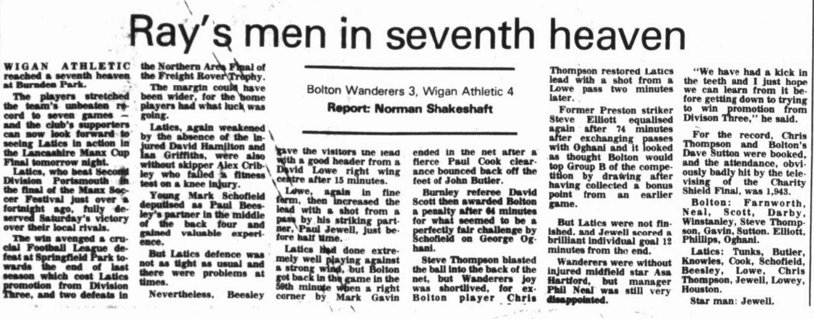 Bolton Wanderers (A) - Lancashire Senior Cup - Saturday 16th August 1986