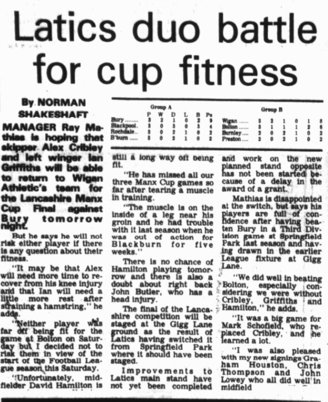 Lancashire Senior Cup - Saturday 16th August 1986