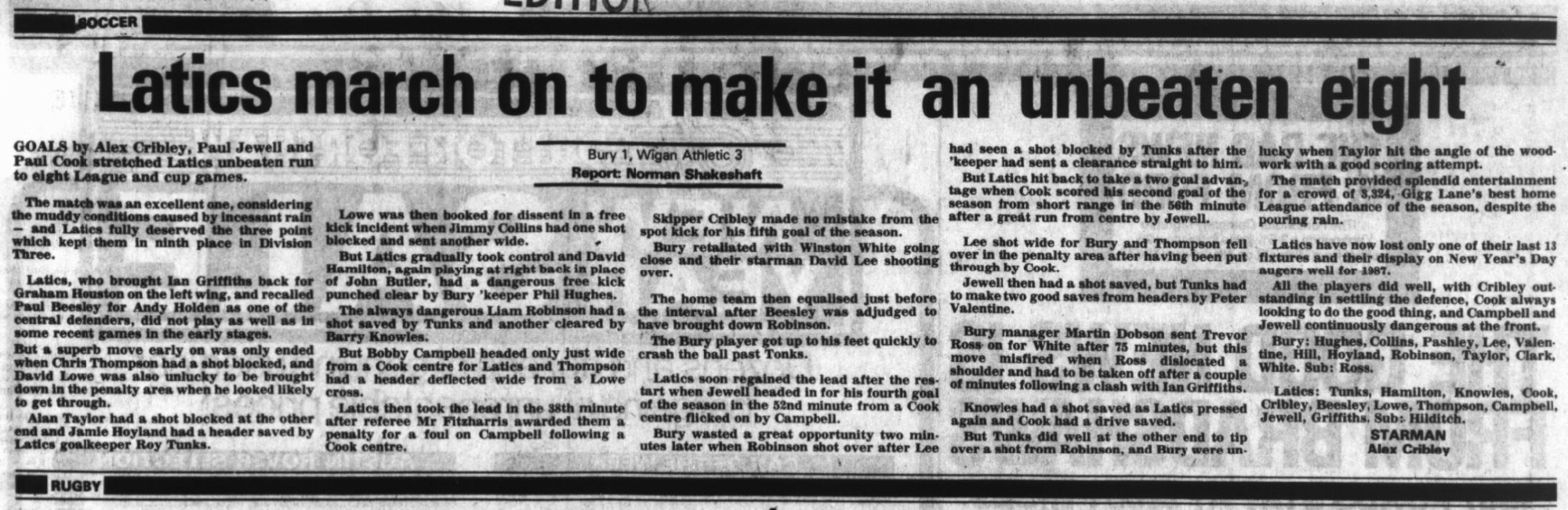 Bury (A) - Today League Division Three (old) - Thursday 1st January 1987