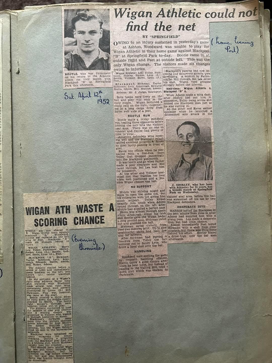 Blackpool Reserves (H) - Lancashire Combination League Division One - Saturday 12th April 1952