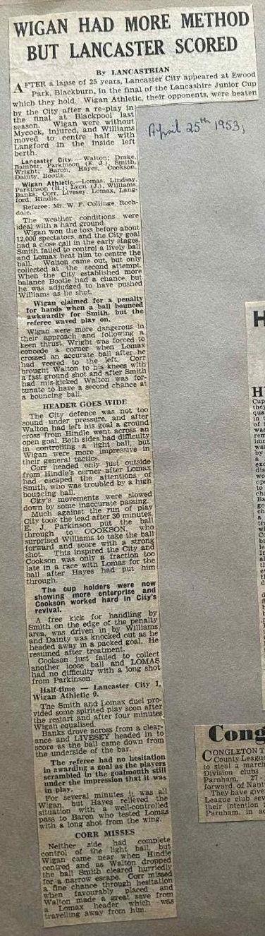 Lancaster City (N) - Lancashire Junior Cup Final - Saturday 25th April 1953