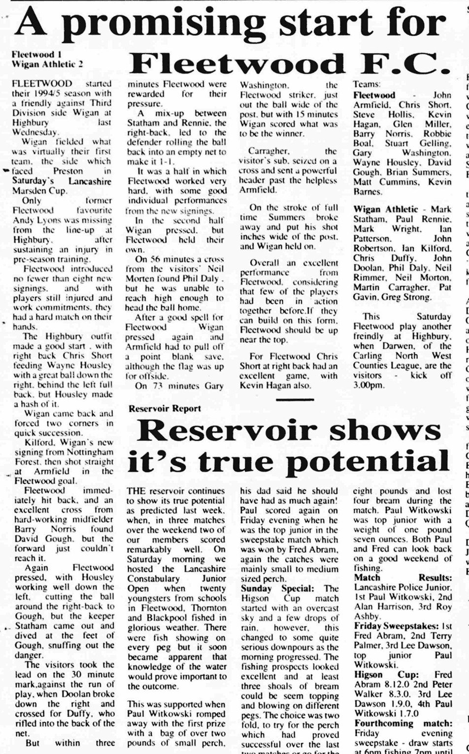 Fleetwood Town (A) - Friendly - Wednesday 20th July 1994
