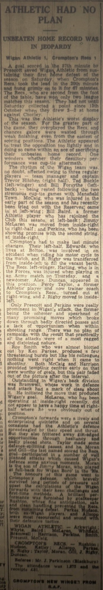 Cromptons Recreation (H) - Lancashire Combination League Division One - Saturday 14th December 1957