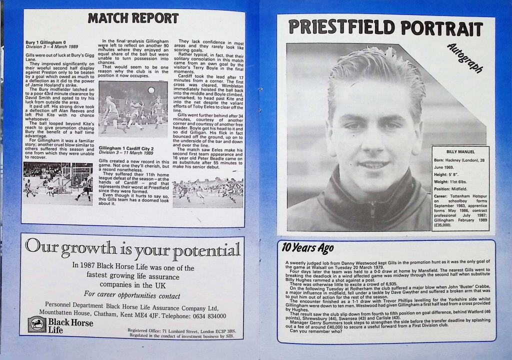 Gillingham (A) - Barclays League Division Three (old) - Friday 24th March 1989