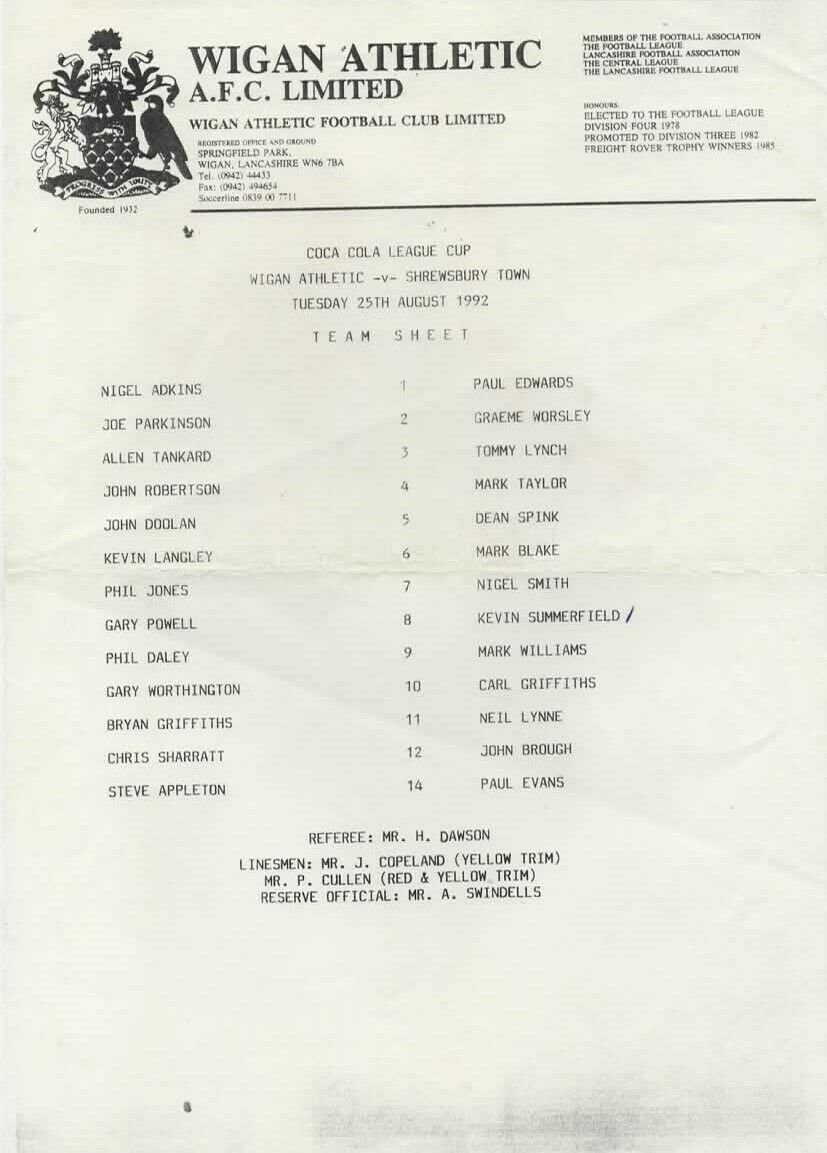 Shrewsbury Town (H) - Coca Cola Cup First Round Second Leg - Tuesday 25th August 1992