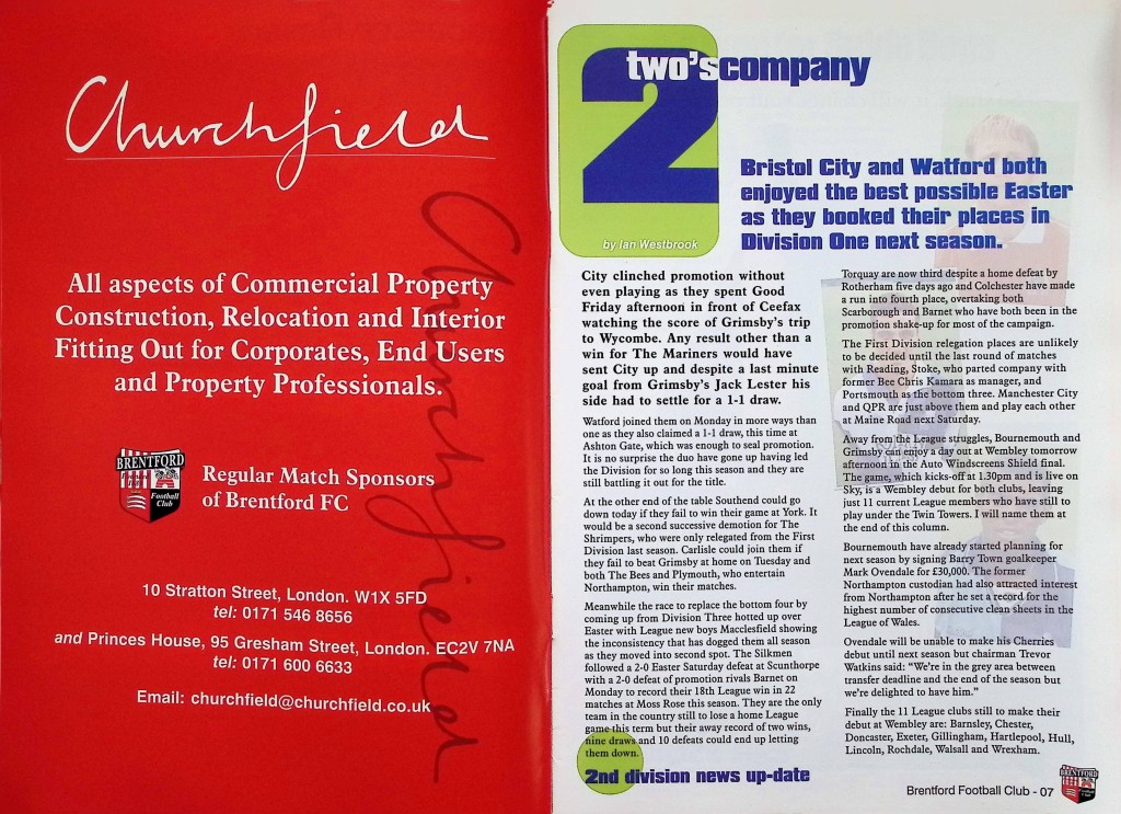 Brentford (A) - Nationwide League Division Two - Saturday 18th April 1998