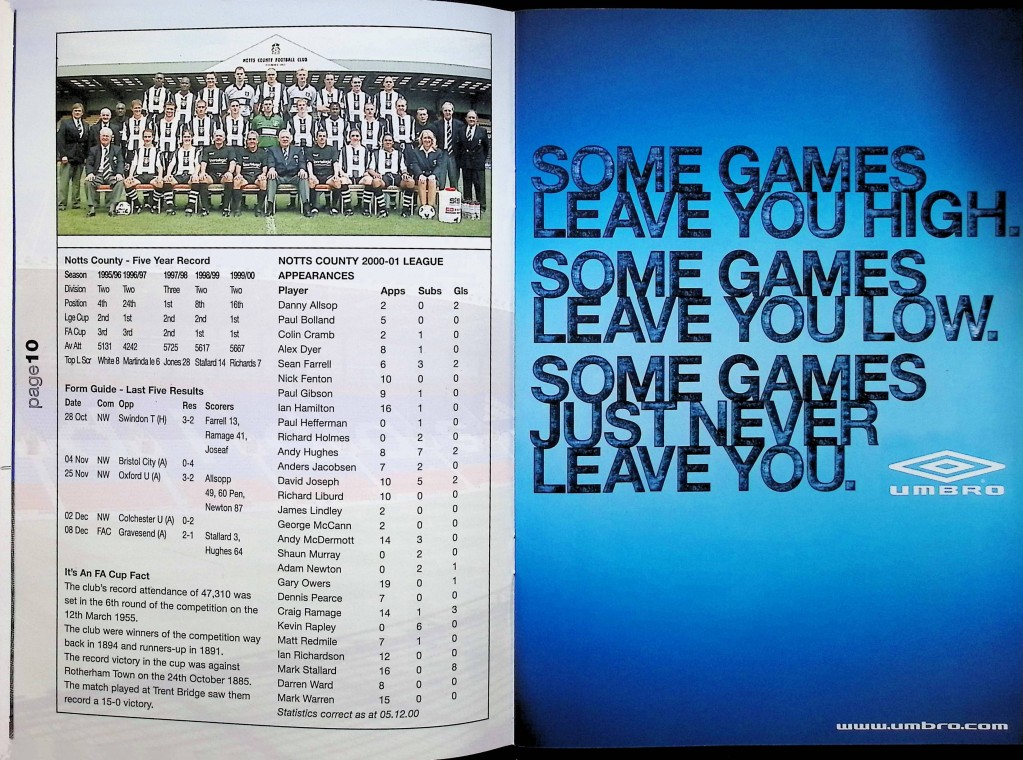 Notts County (H) - FA Cup Second Round - Tuesday 12th December 2000