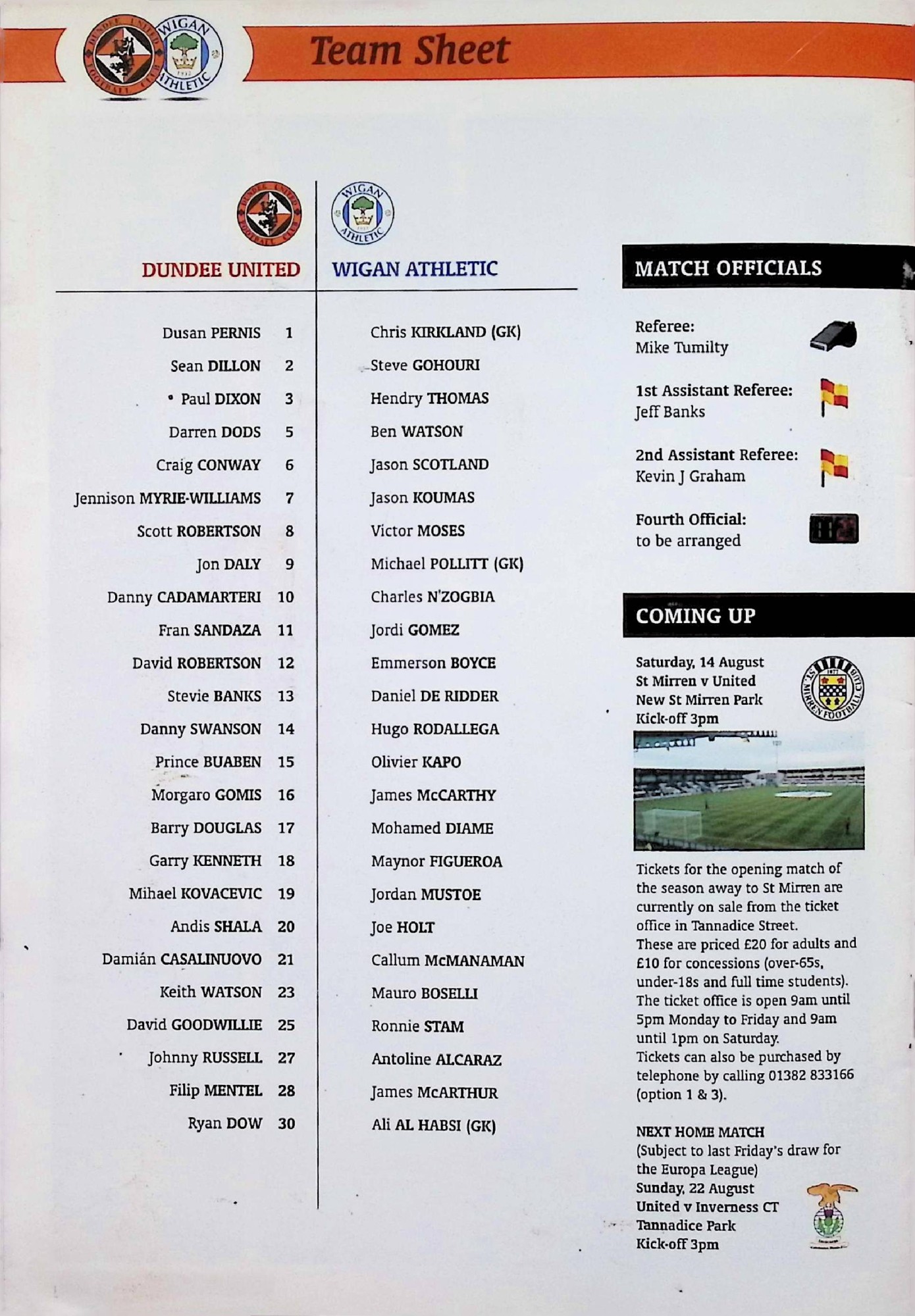 Dundee United (A) - Friendly - Sunday 8th August 2010