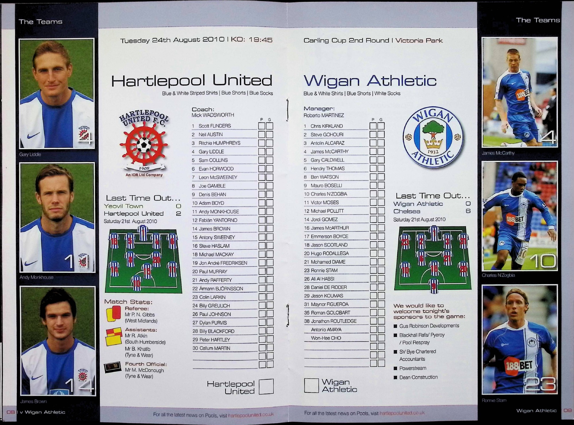 Hartlepool United (A) - Carling Cup Second Round - Tuesday 24th August 2010