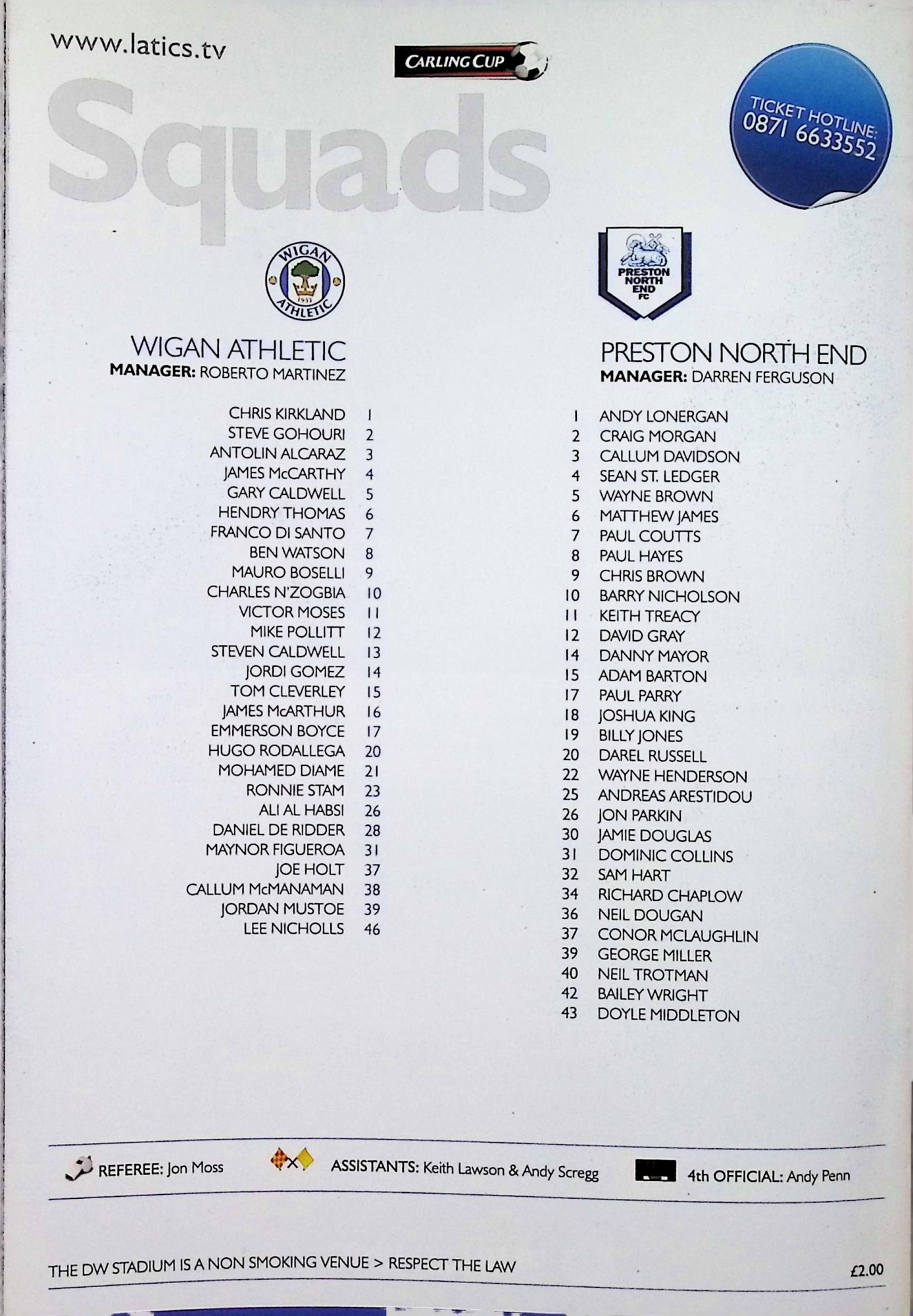 Preston North End (H) - Carling Cup Third Round - Wednesday 22nd September 2010