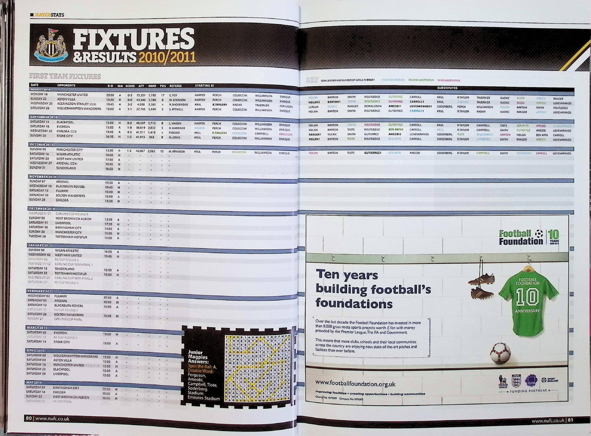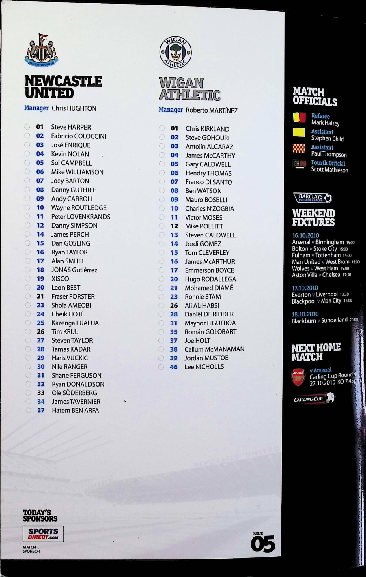 Newcastle United (A) - Barclays Premier League - Saturday 16th October 2010