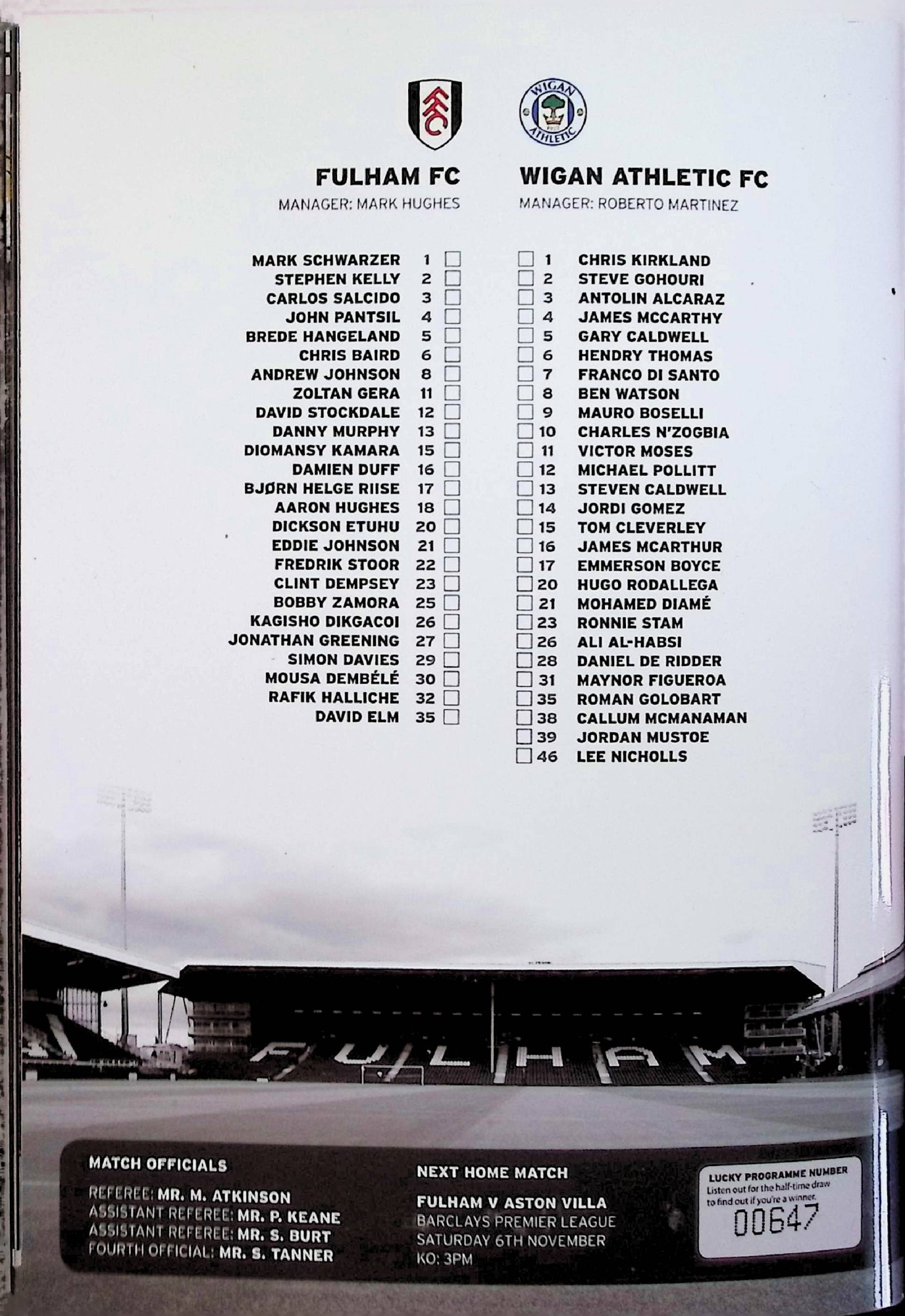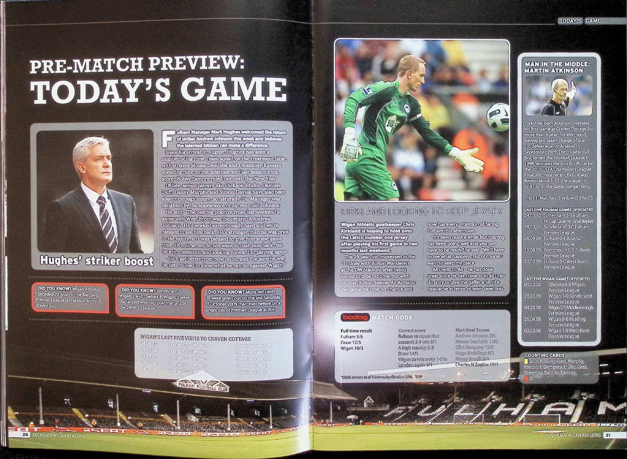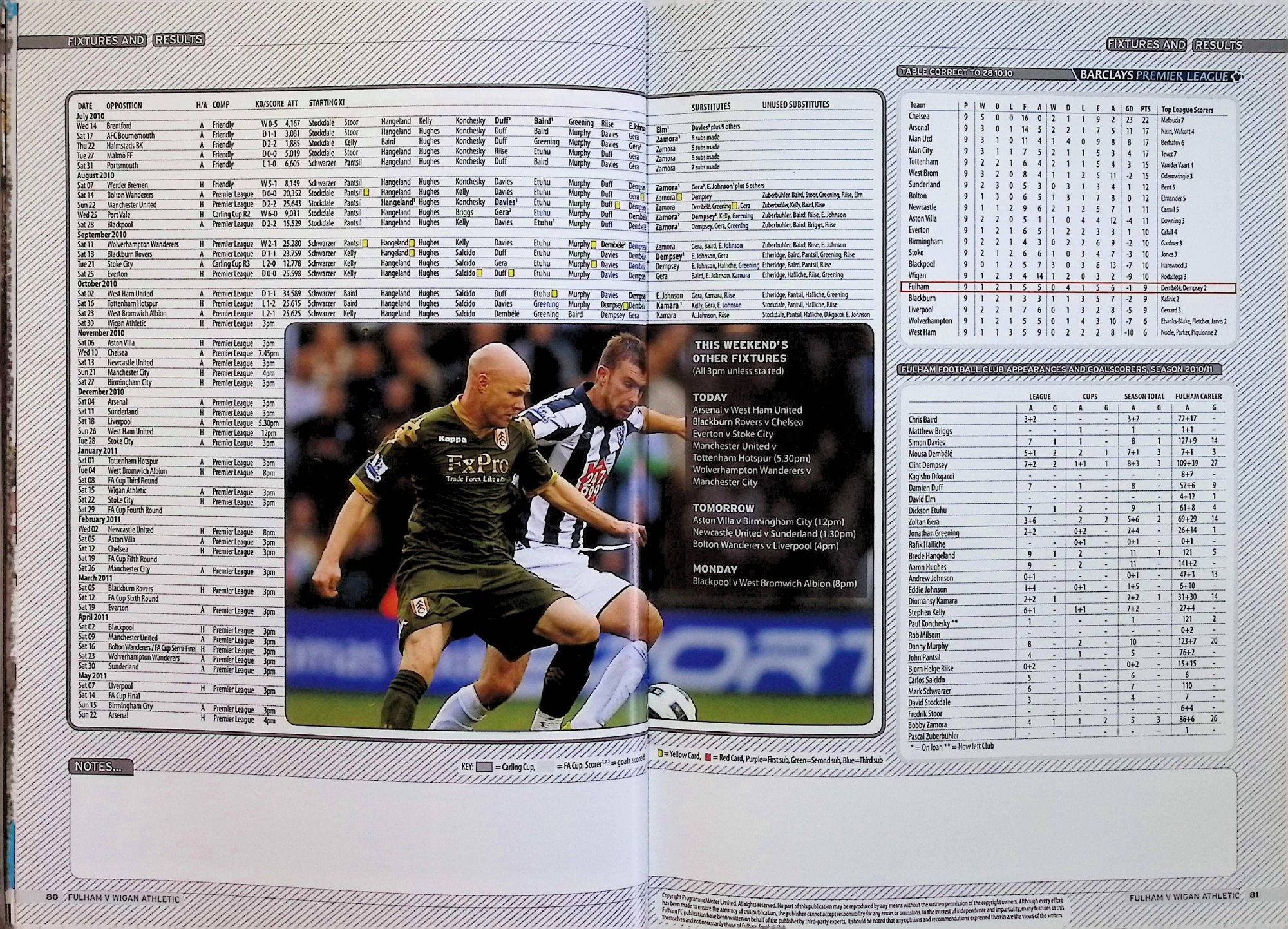 Fulham (A) - Barclays Premier League - Saturday 30th October 2010
