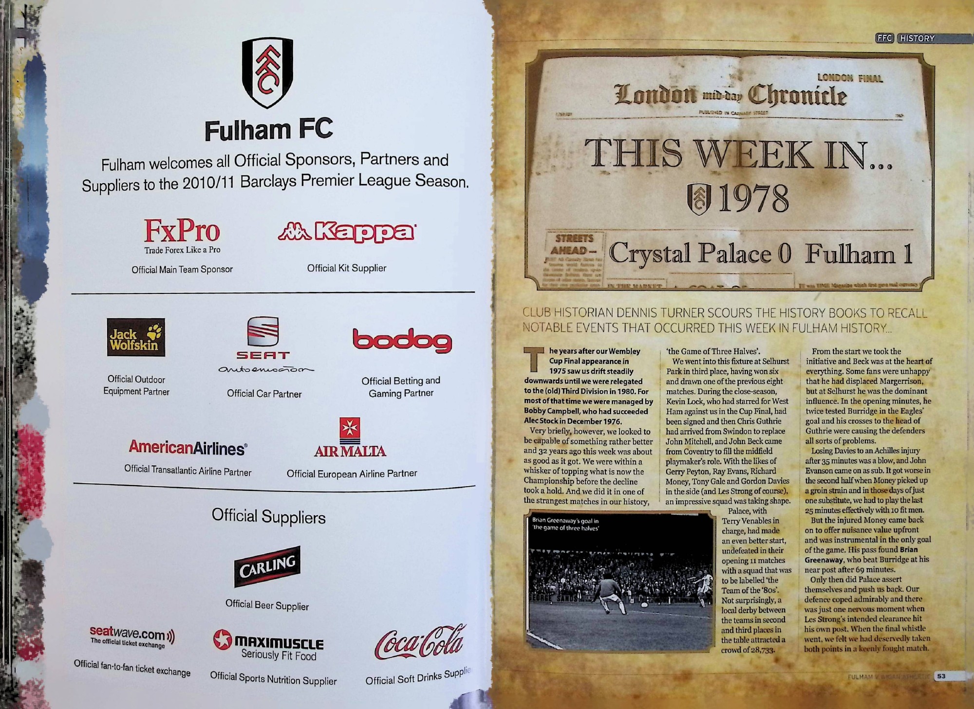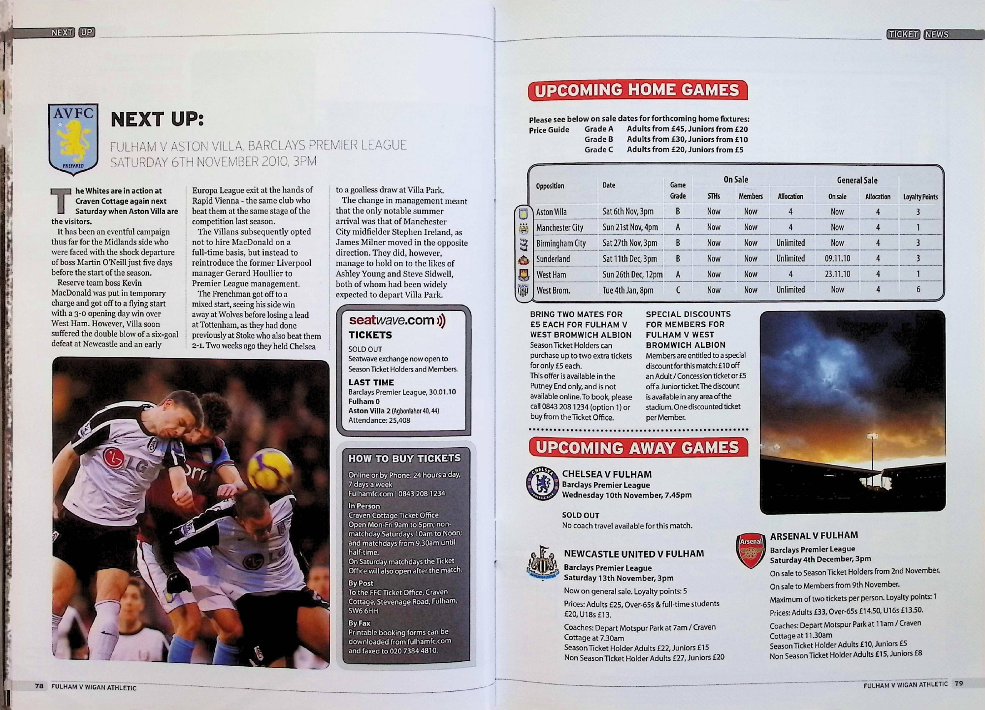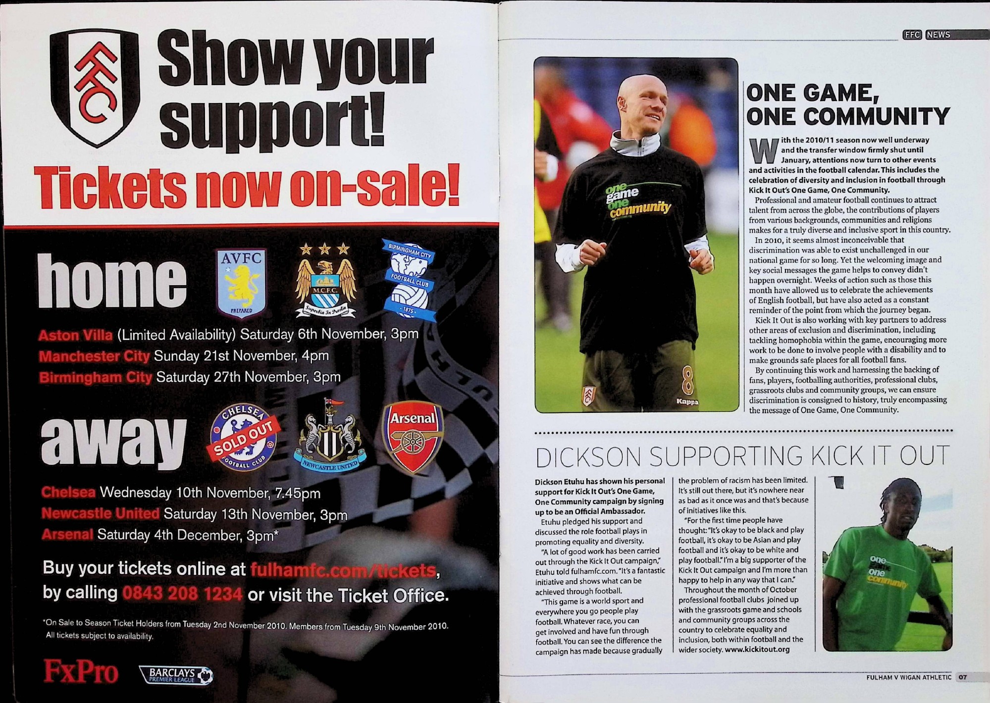 Fulham (A) - Barclays Premier League - Saturday 30th October 2010
