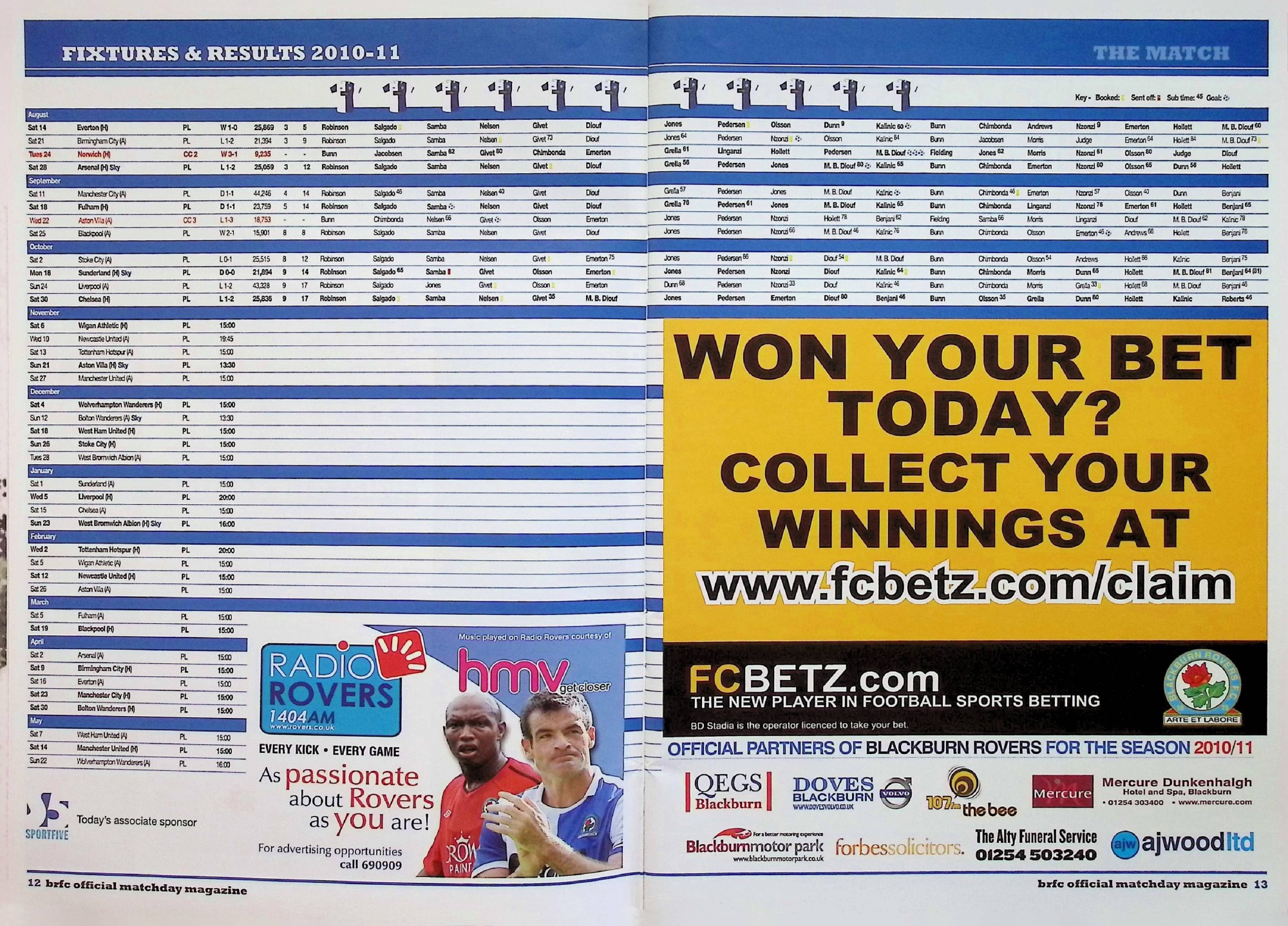 Blackburn Rovers (A) - Barclays Premier League - Saturday 6th November 2010