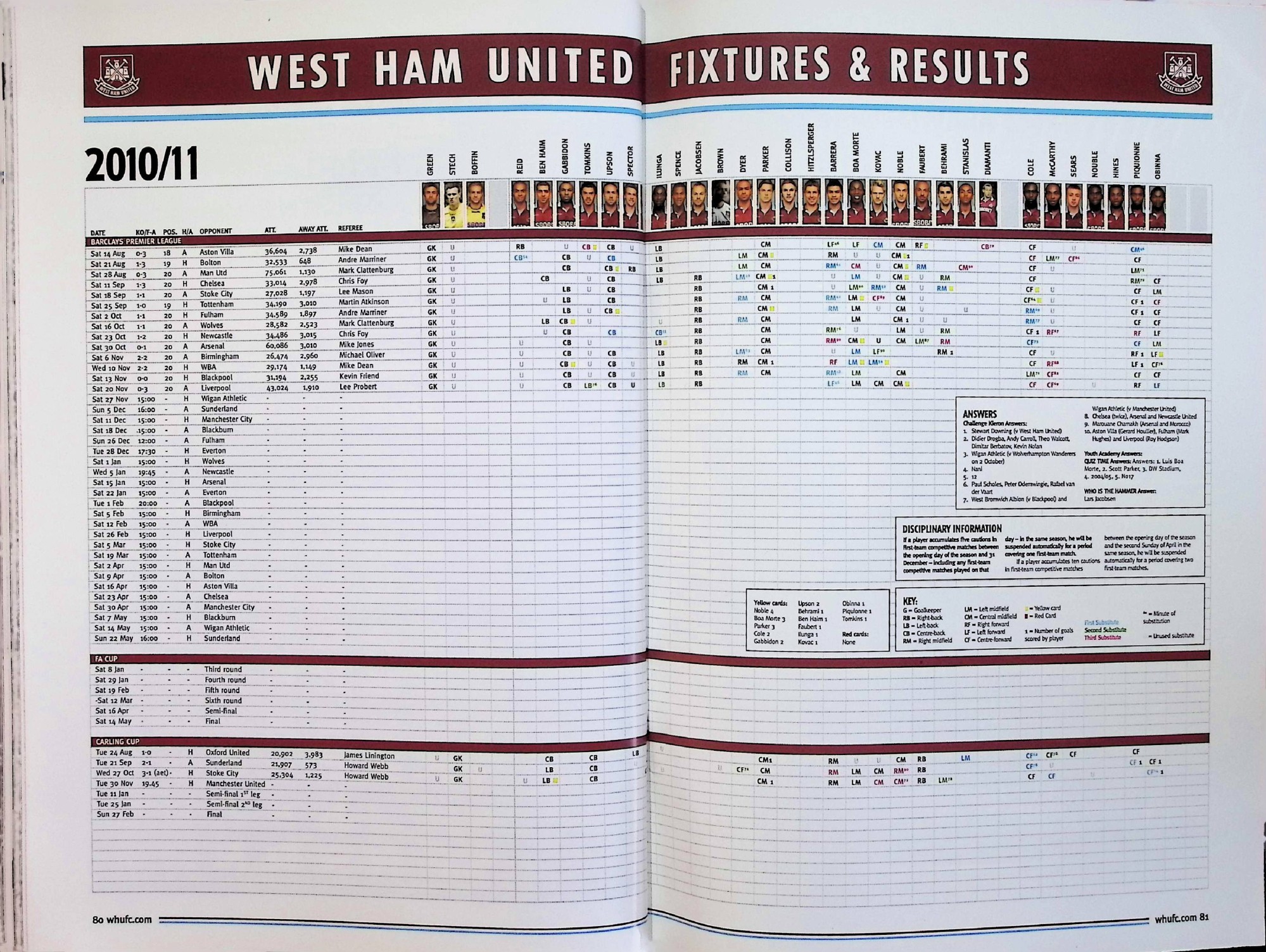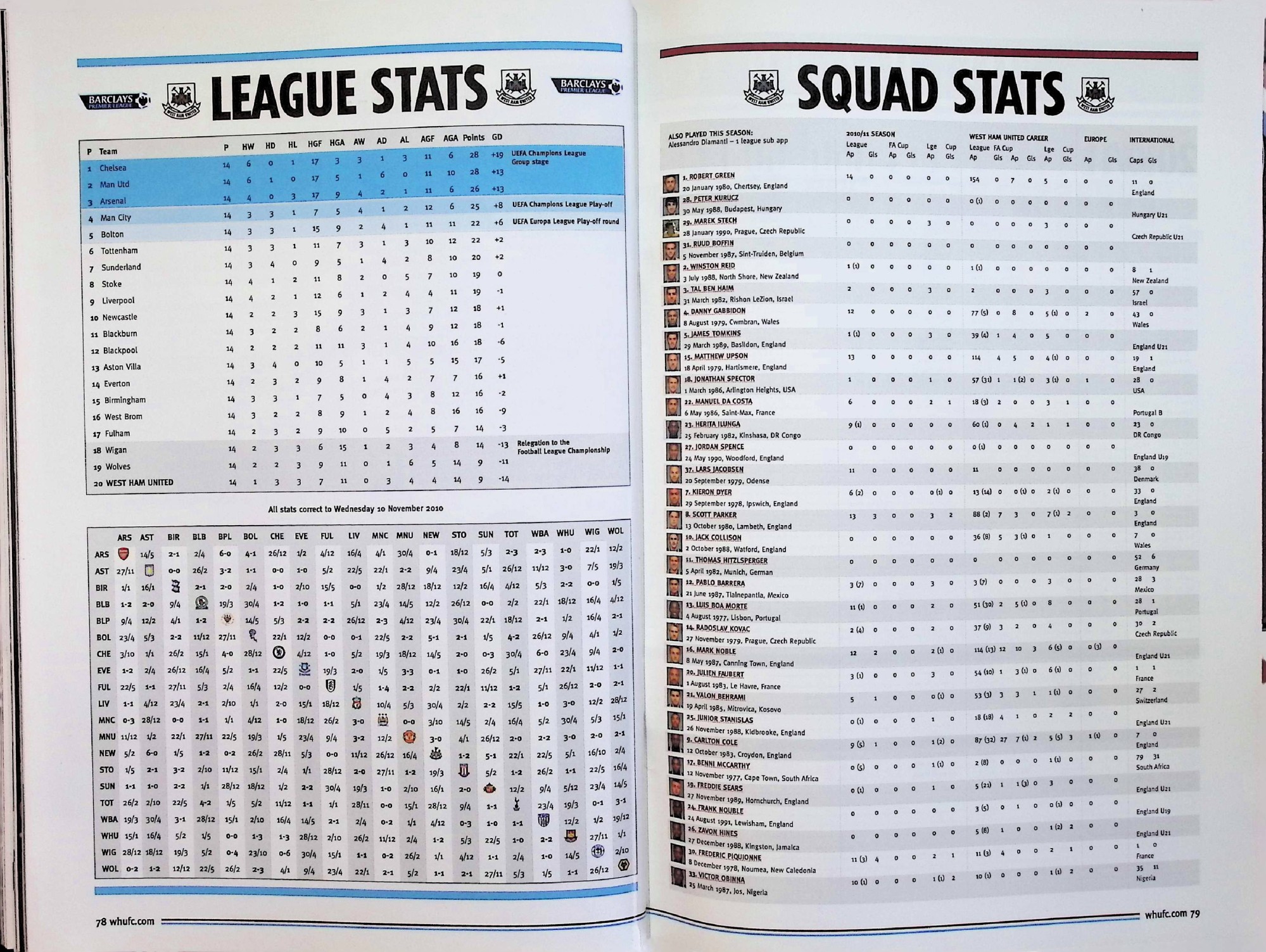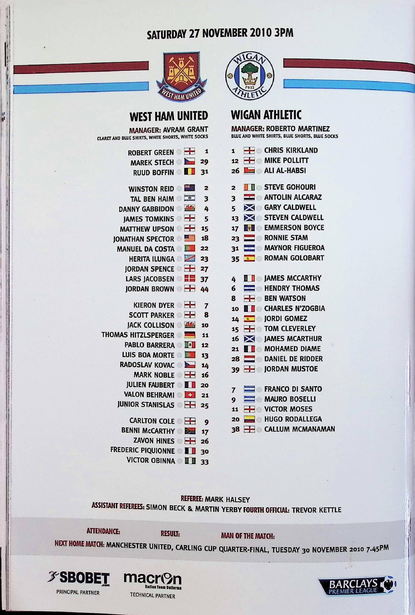 West Ham United (A) - Barclays Premier League - Saturday 27th November 2010