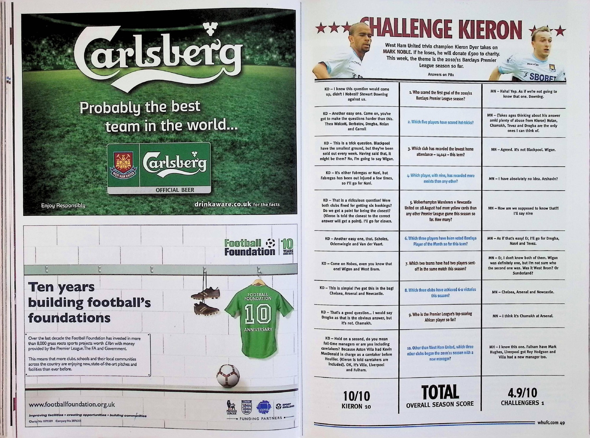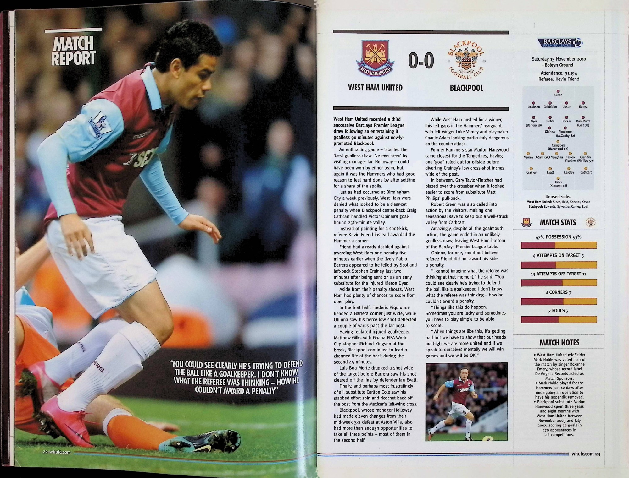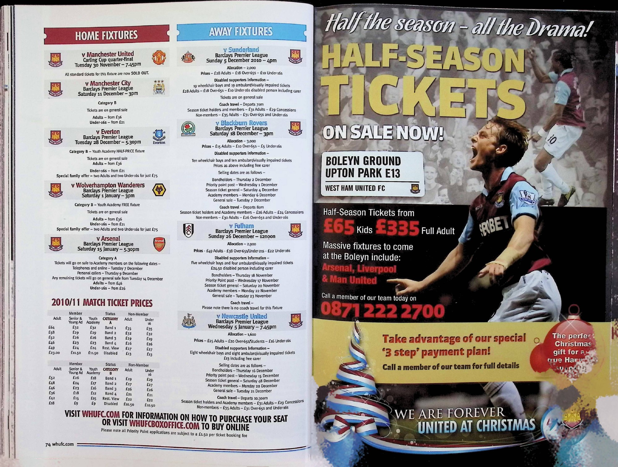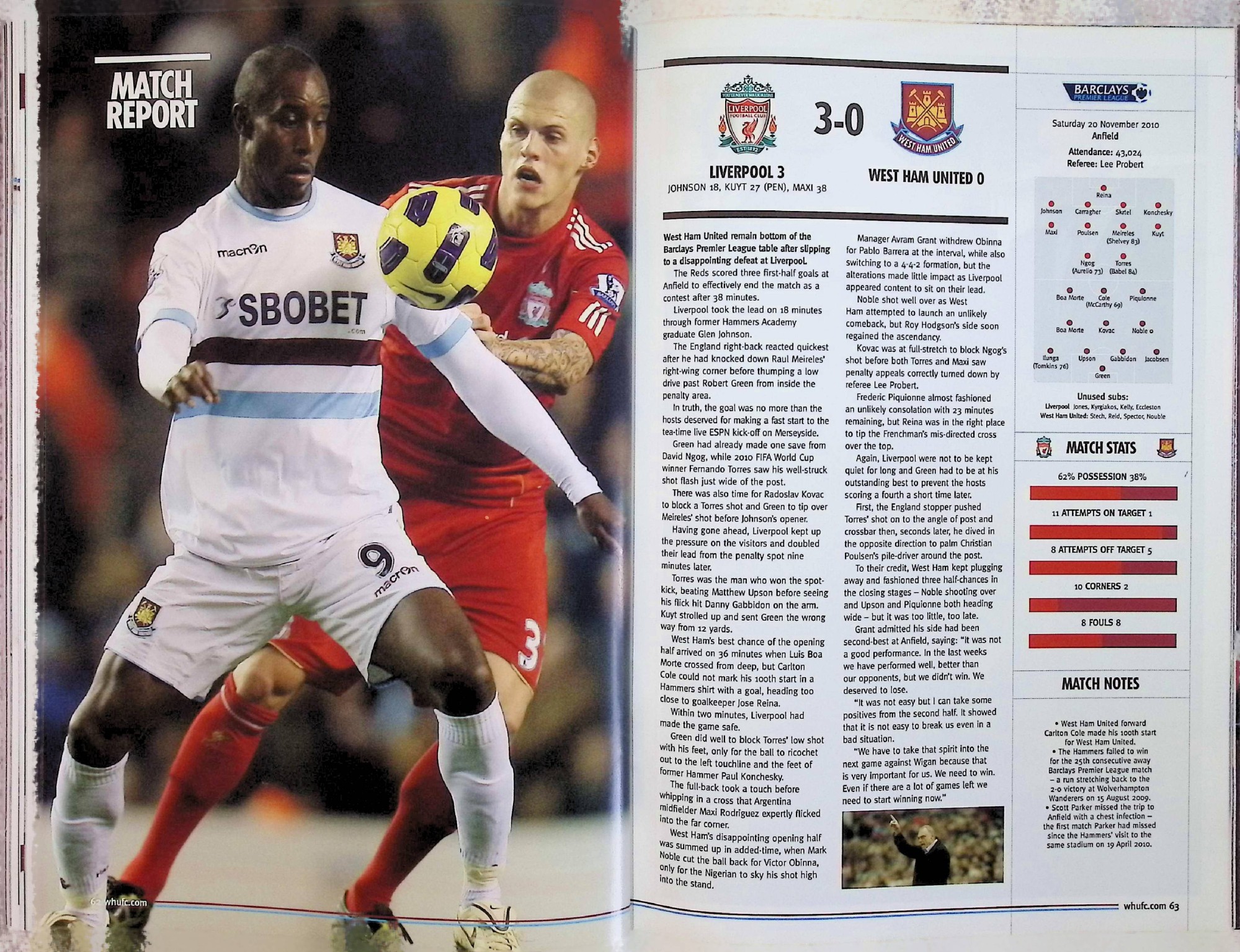 West Ham United (A) - Barclays Premier League - Saturday 27th November 2010