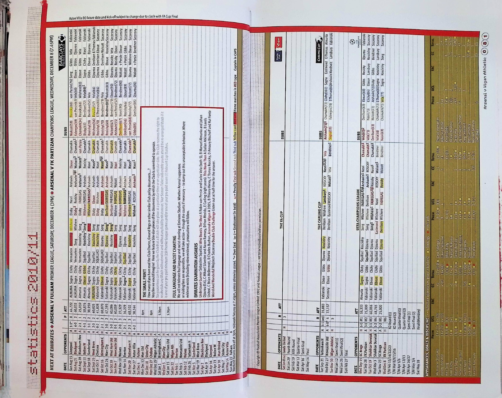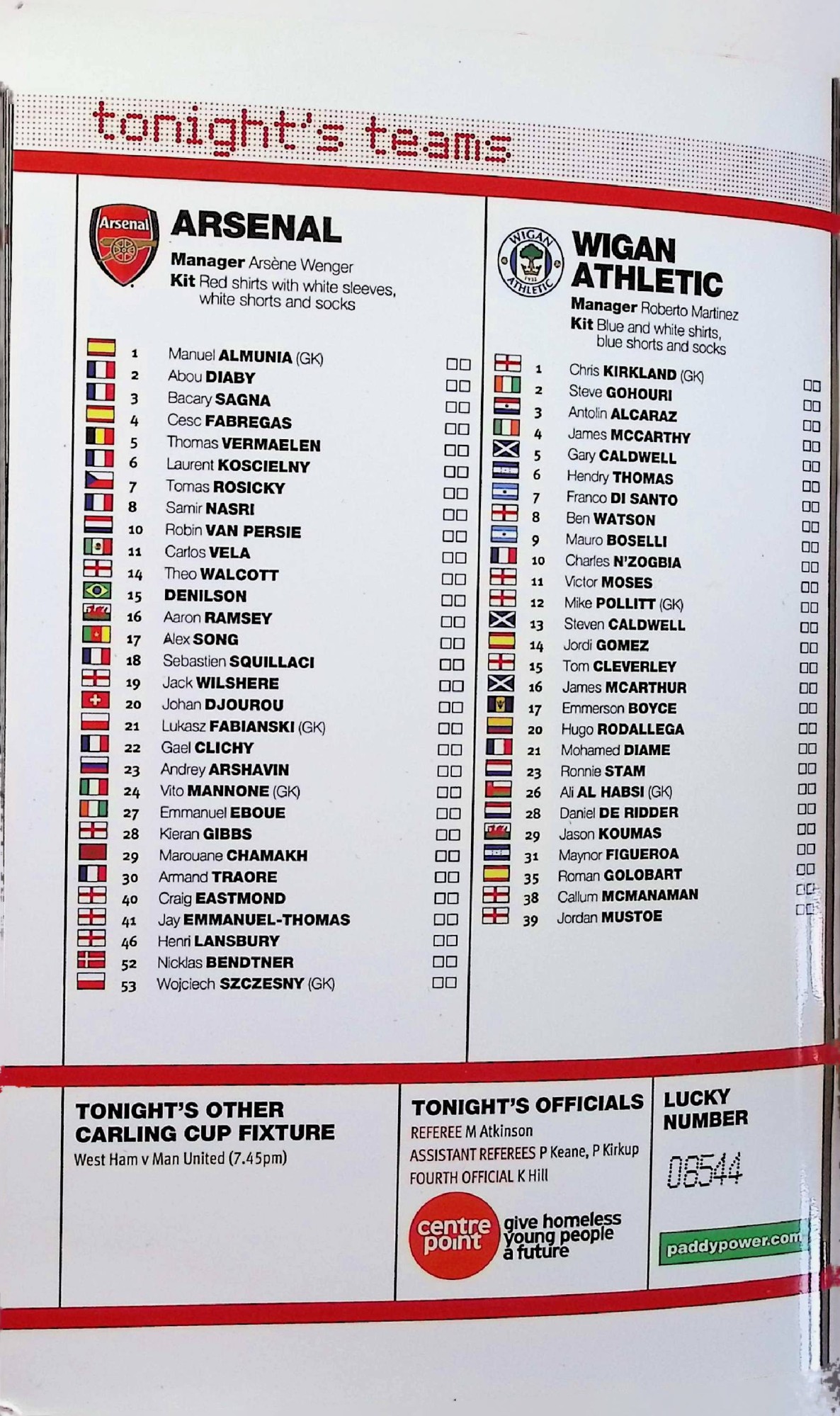 Arsenal (A) - Carling Cup Fifth Round - Tuesday 30th November 2010