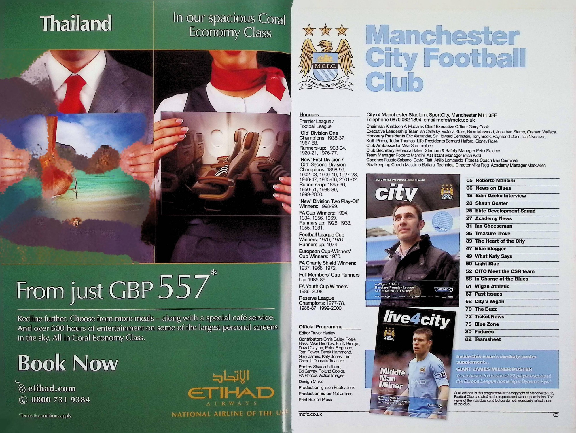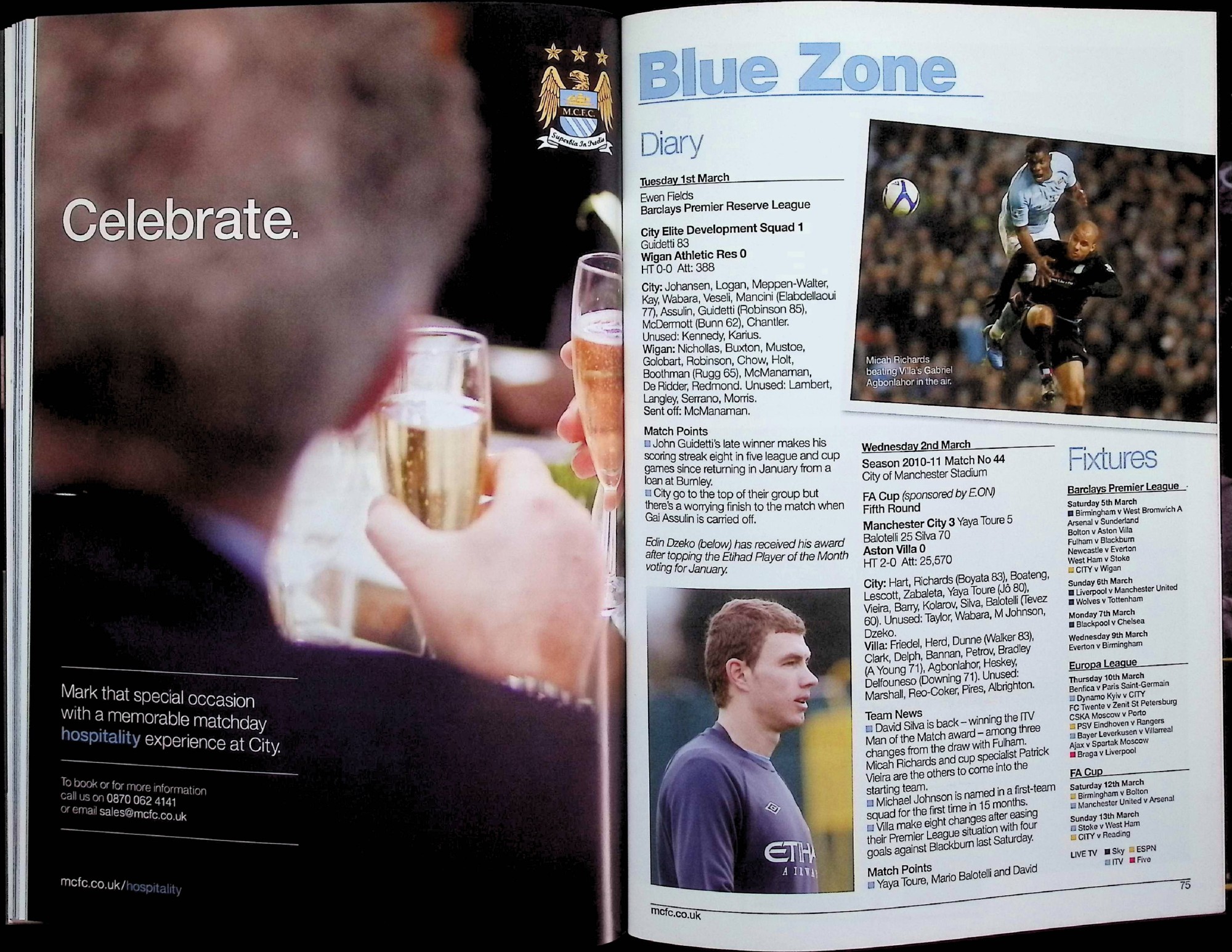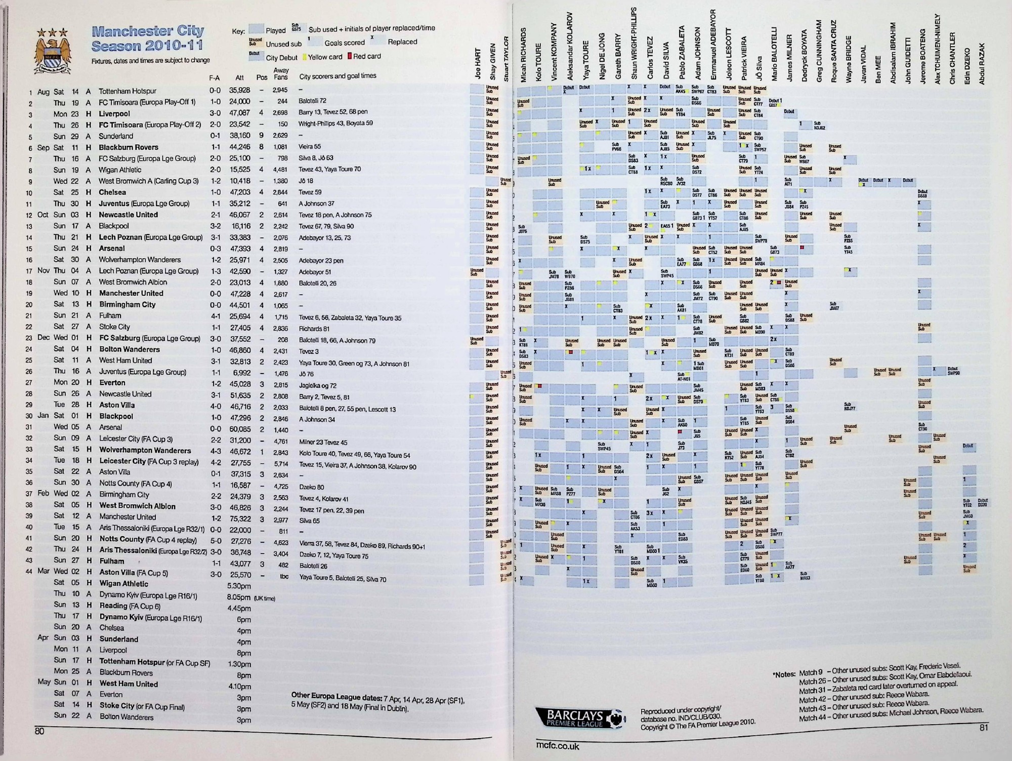 Manchester City (A) - Barclays Premier League - Saturday 5th March 2011