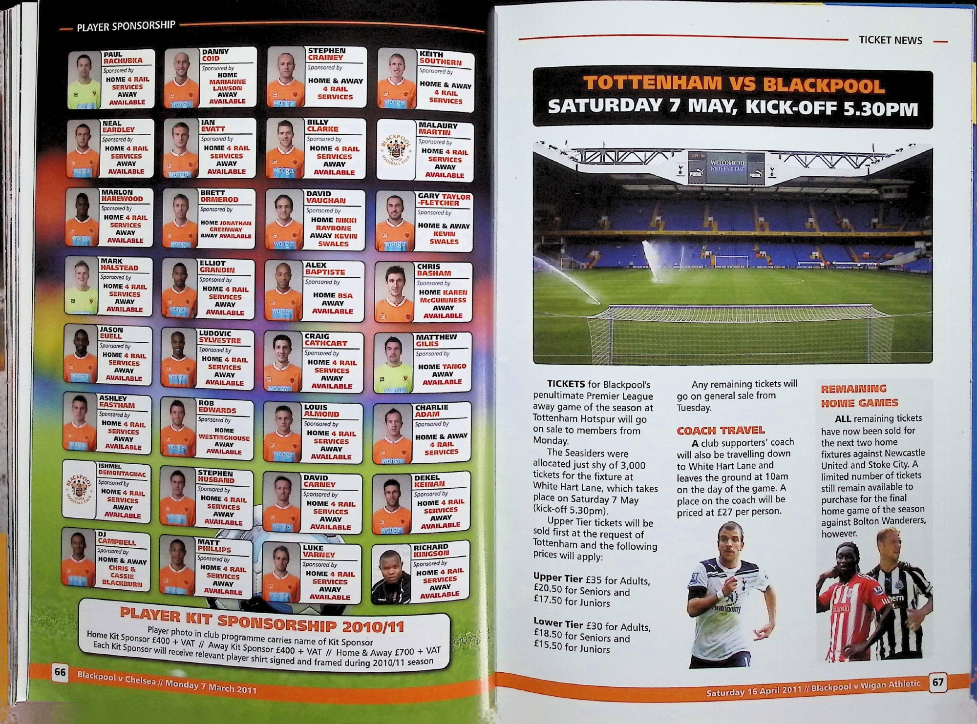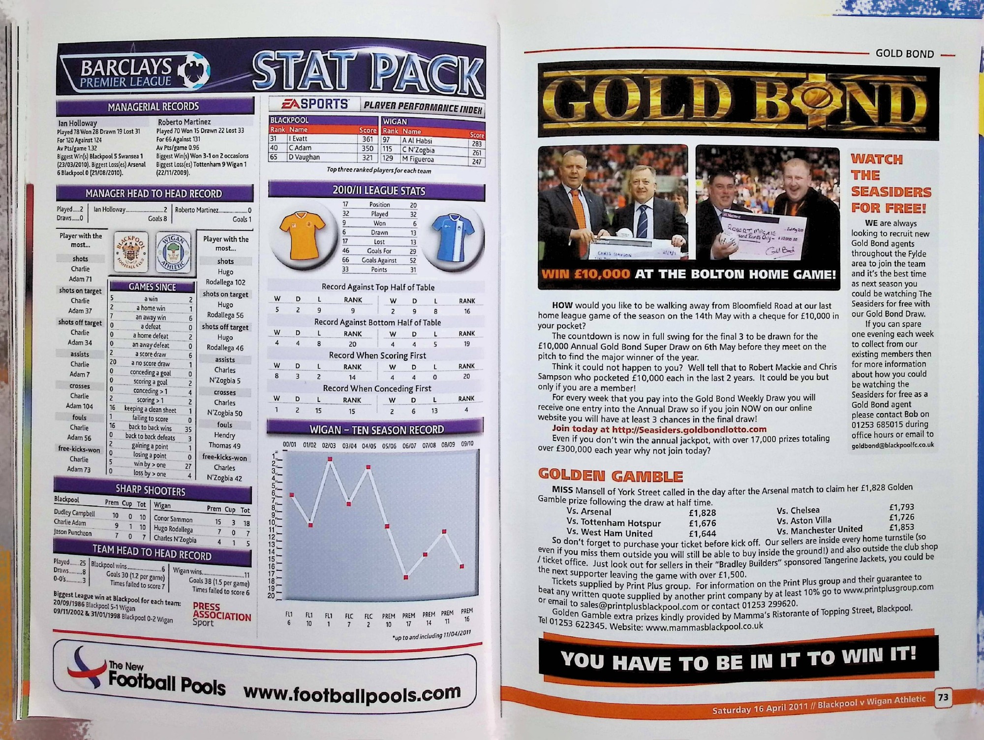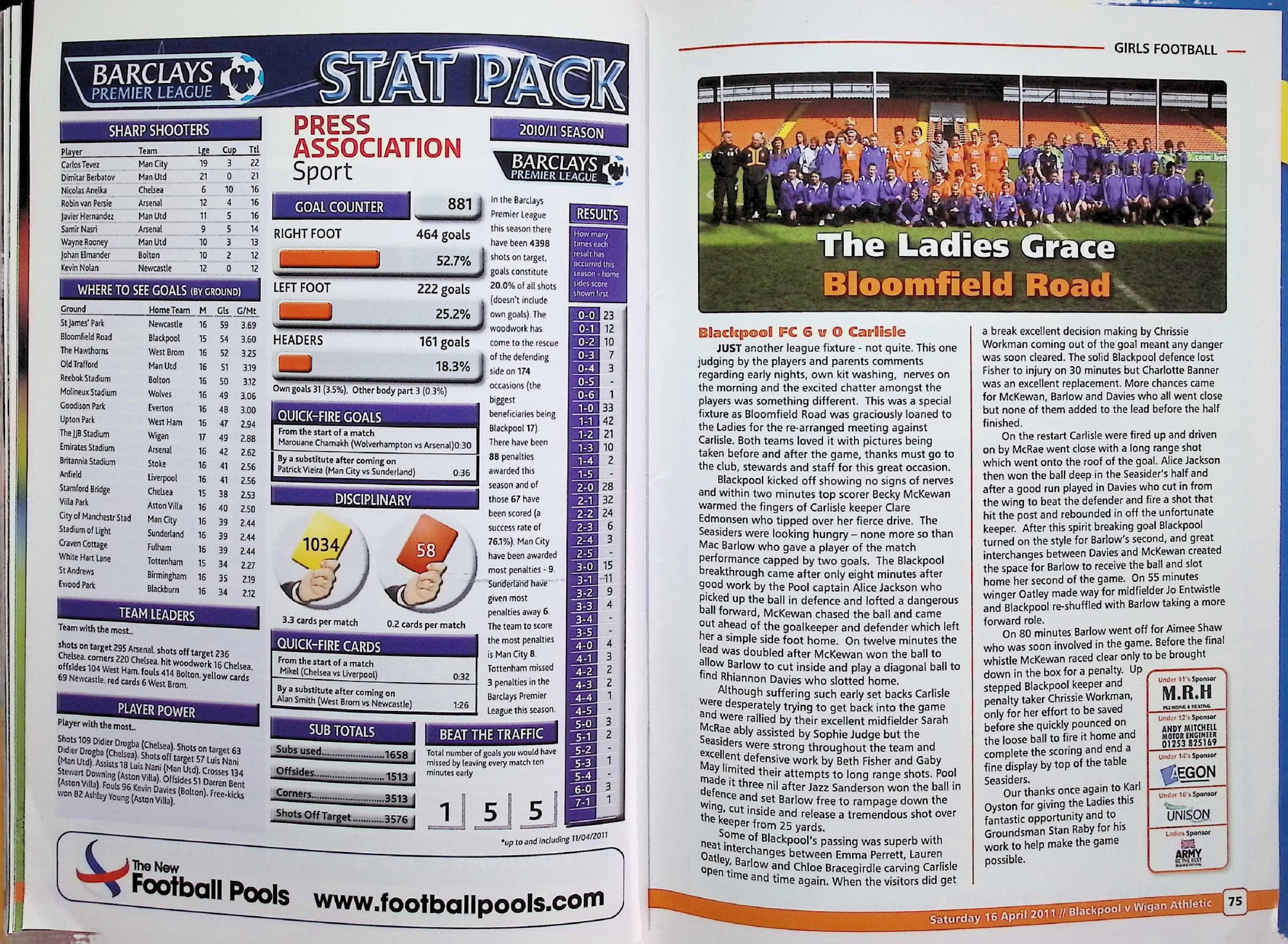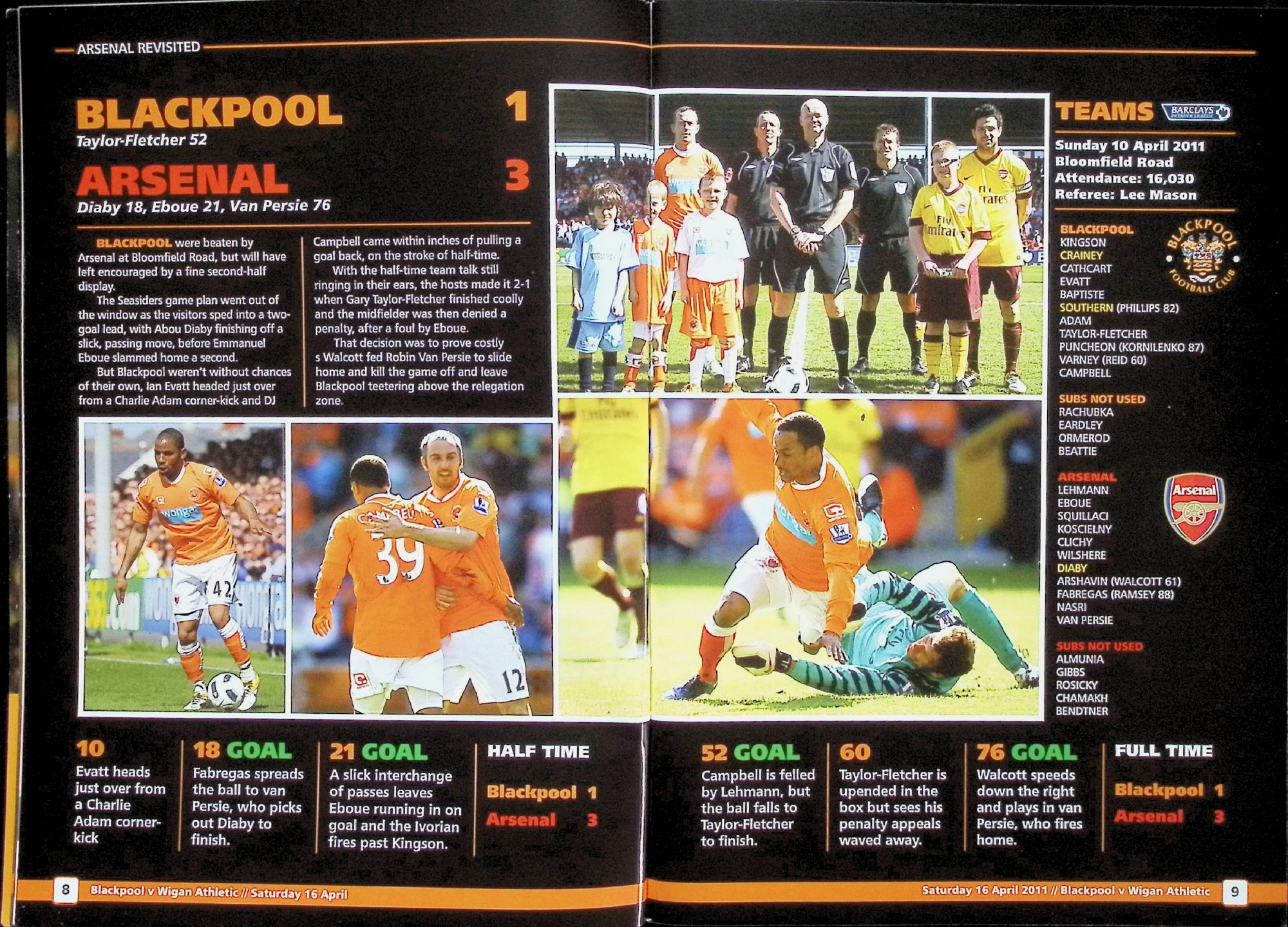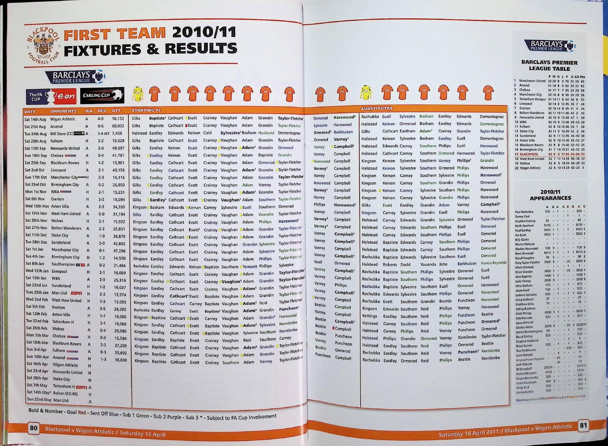 Blackpool (A) - Barclays Premier League - Saturday 16th April 2011