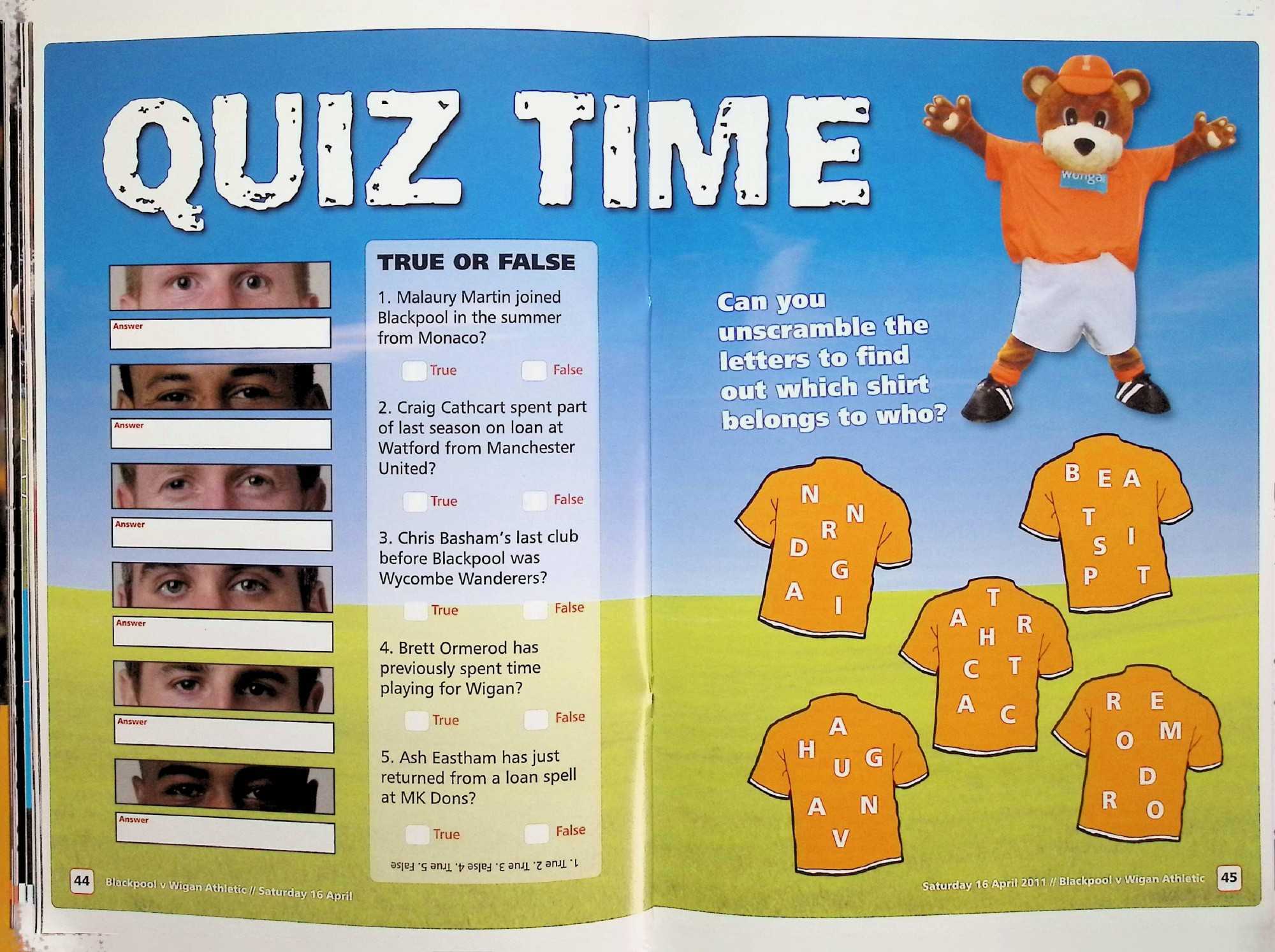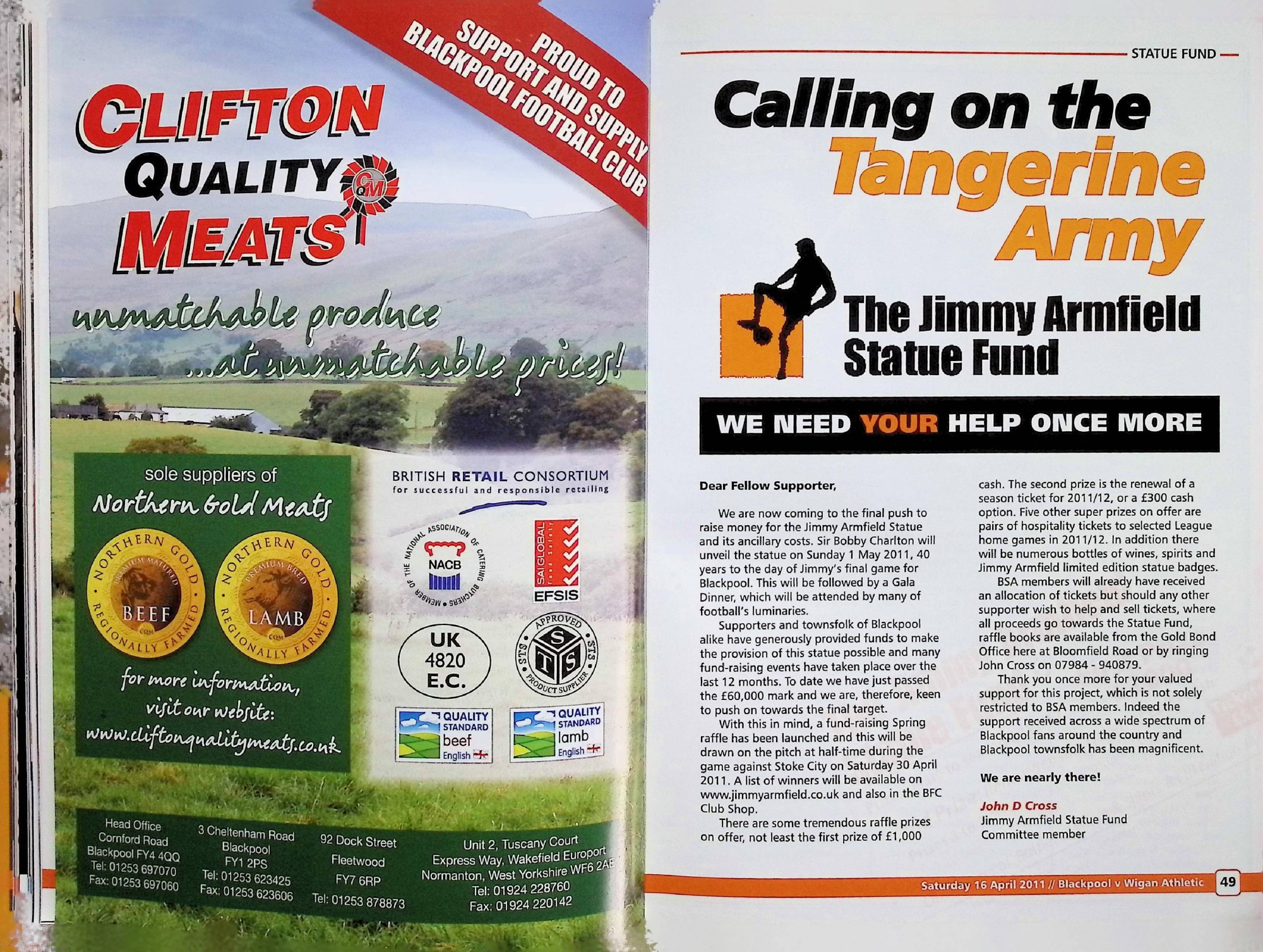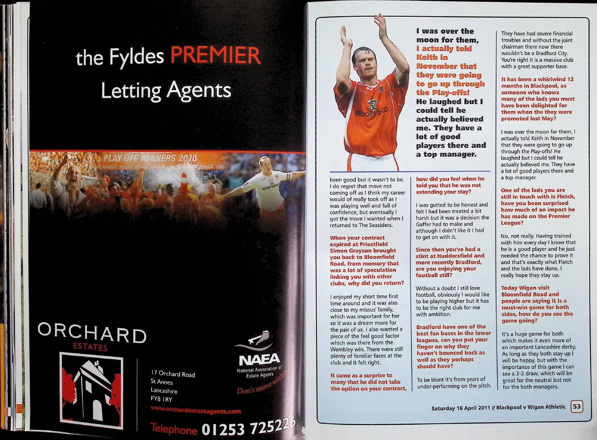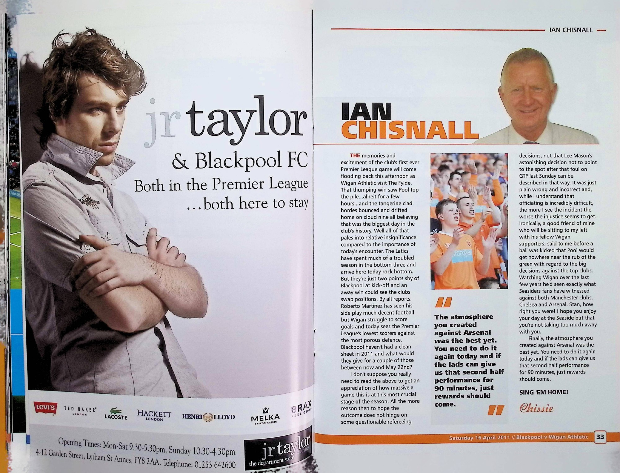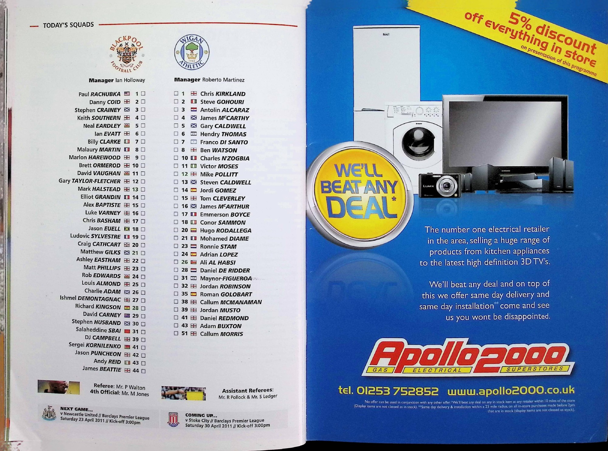 Blackpool (A) - Barclays Premier League - Saturday 16th April 2011