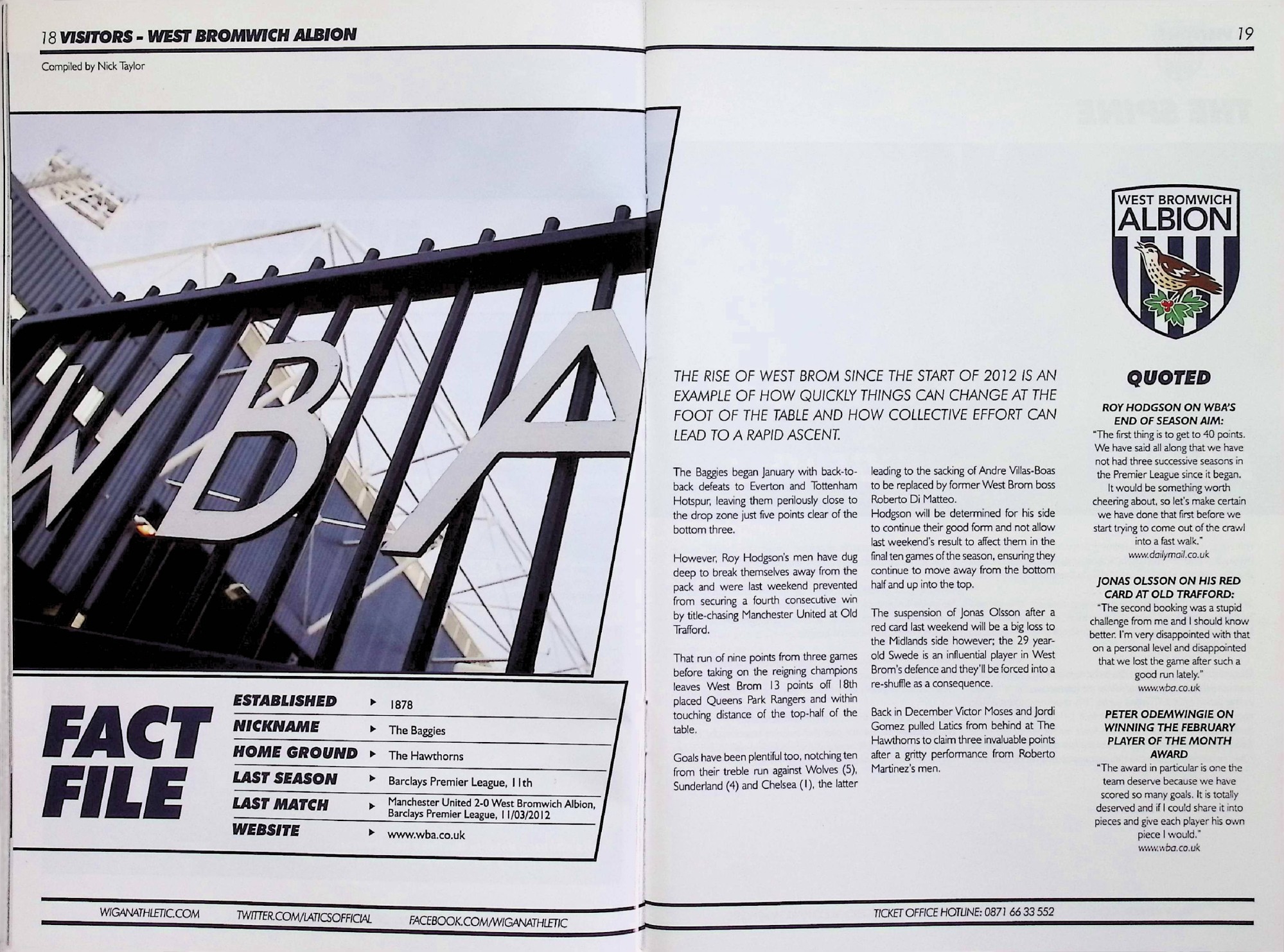 West Bromwich Albion (H) - Barclays Premier League - Saturday 17th March 2012