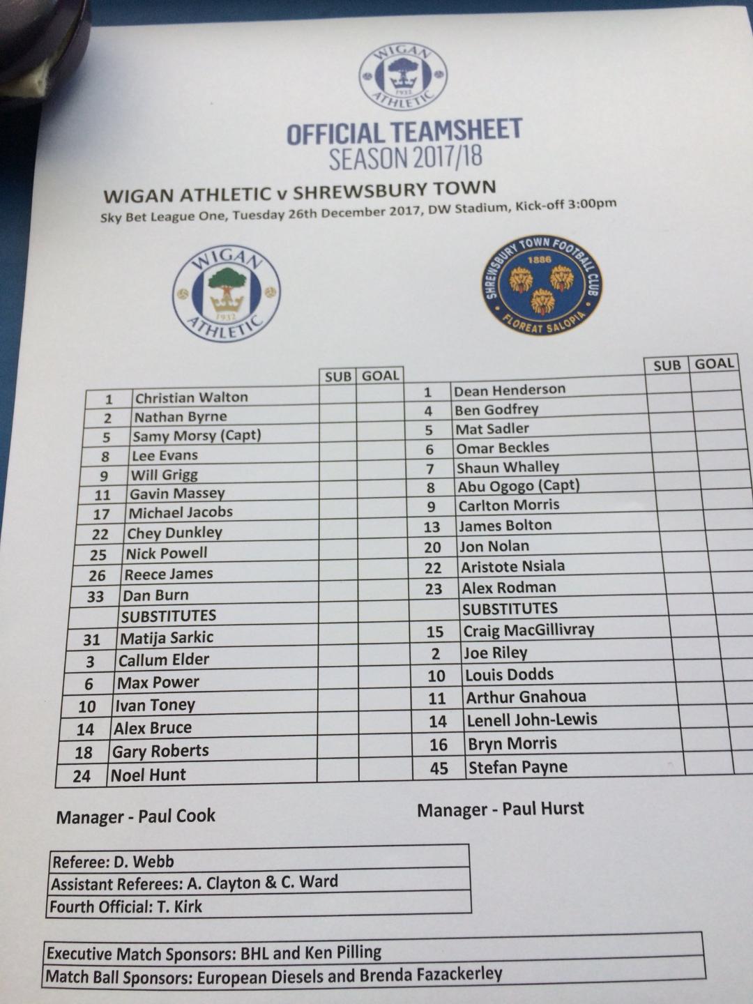 Shrewsbury Town (H) - Sky Bet League One - Tuesday 26th December 2017