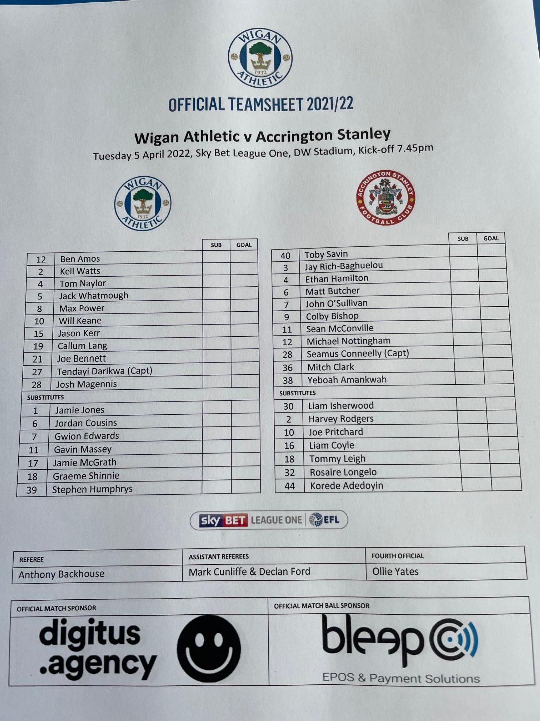 Accrington Stanley (H) - Sky Bet League One - Tuesday 5th April 2022