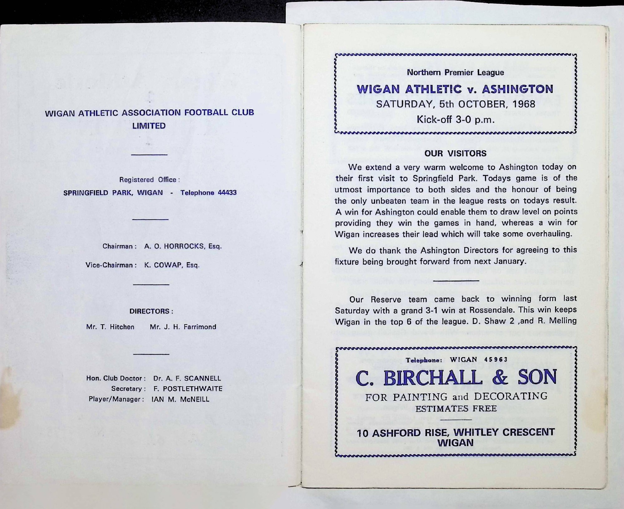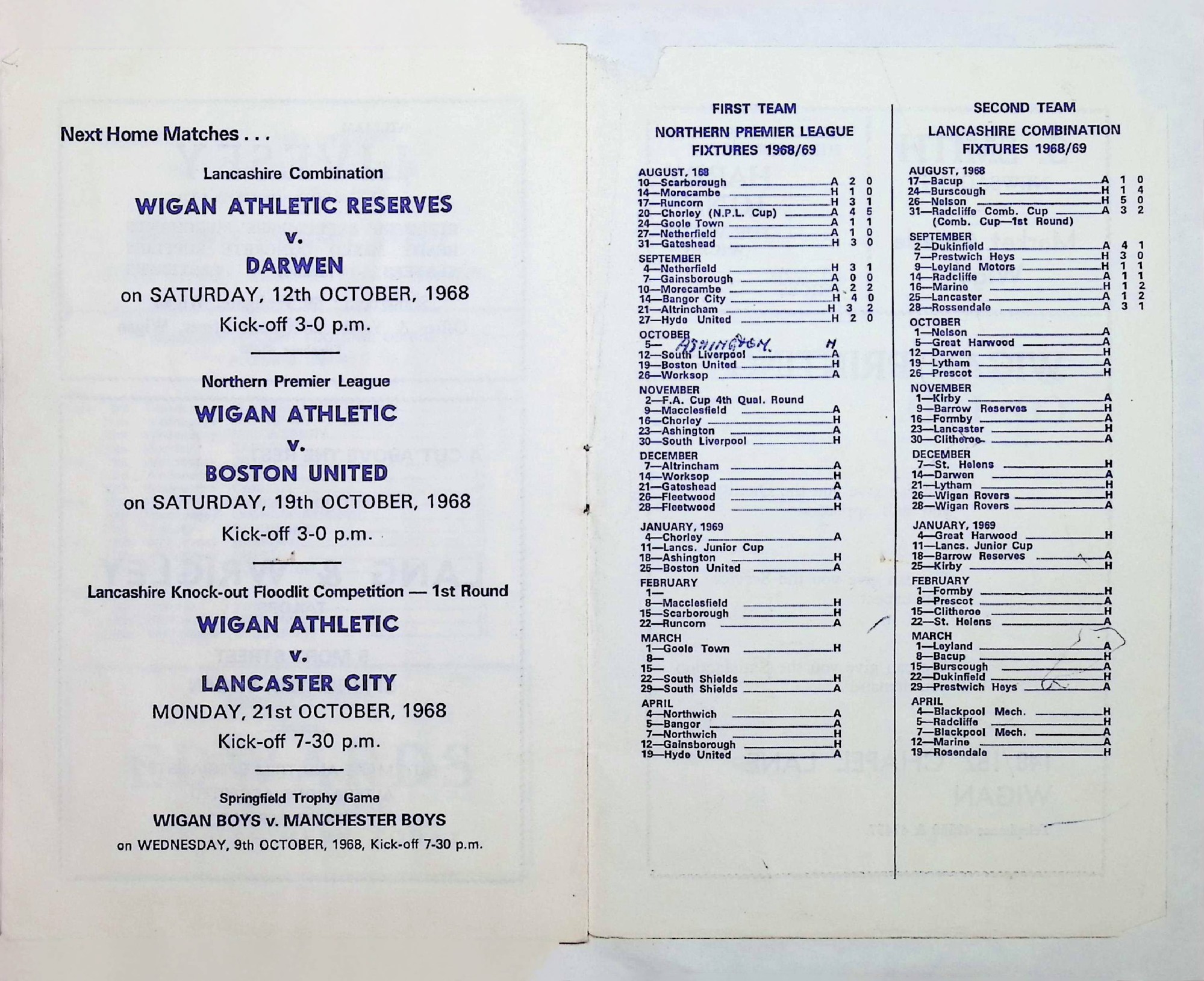 Ashington (H) - Northern Premier League - Saturday 5th October 1968