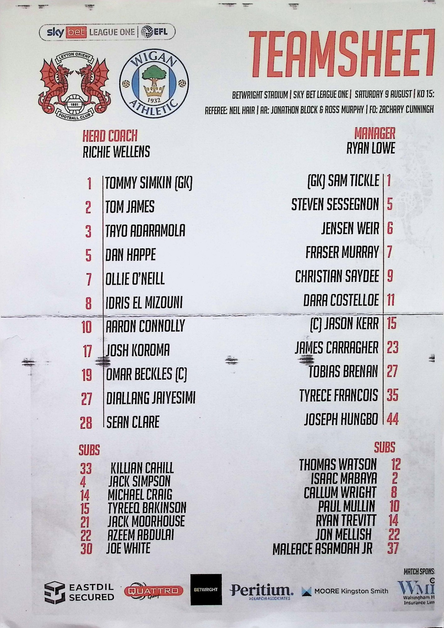 Leyton Orient (A) - Sky Bet League One - Saturday 9th August 2025