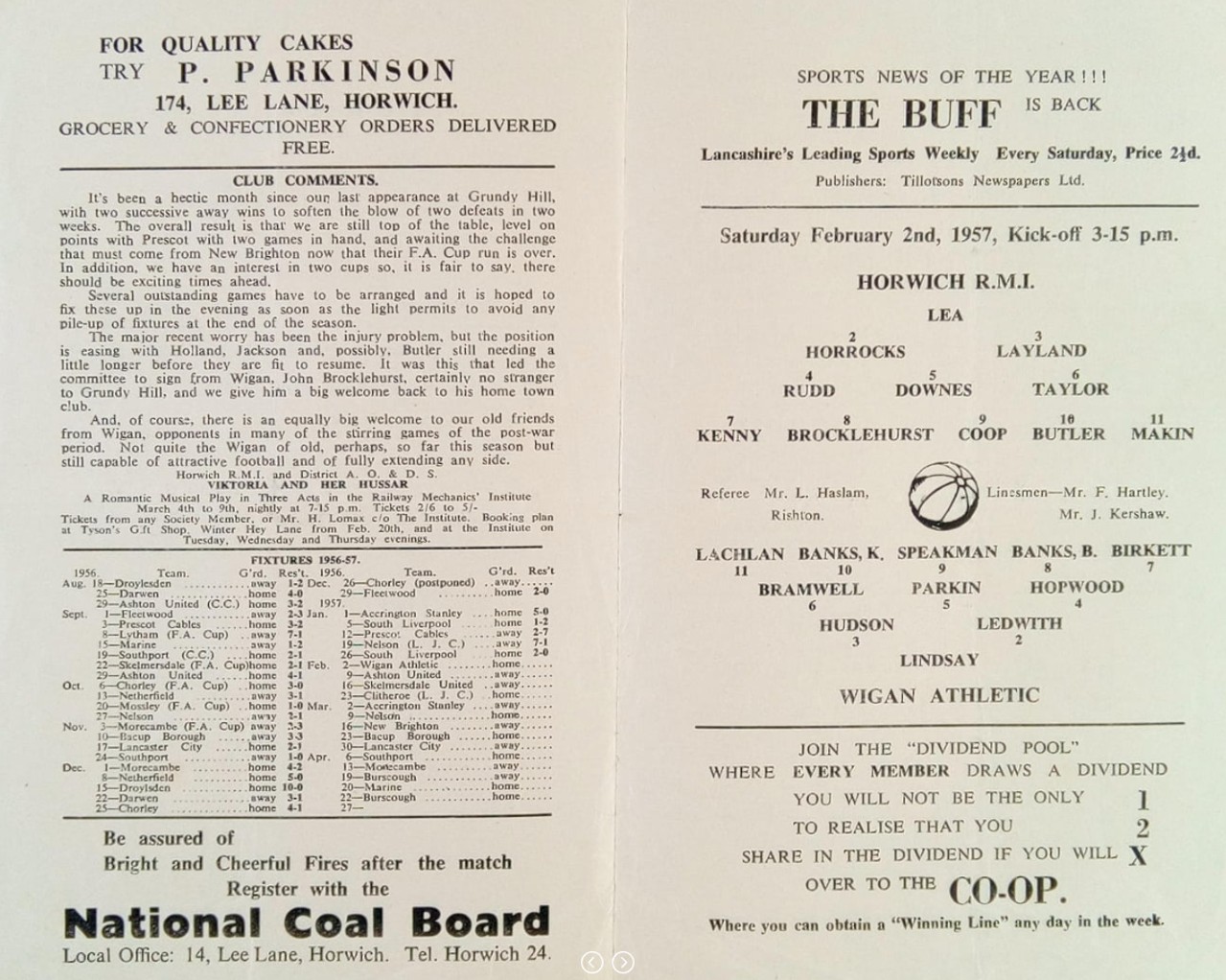 Horwich RMI (A) - Lancashire Combination League Division One - Saturday 2nd February 1957