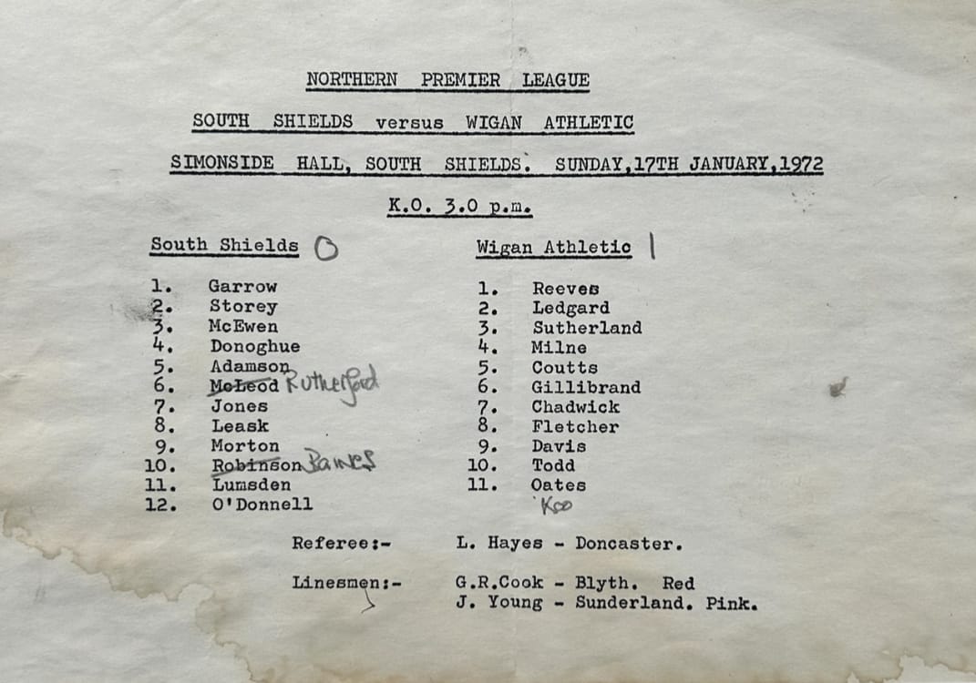 South Shields (A) - Northern Premier League - Saturday 15th January 1972